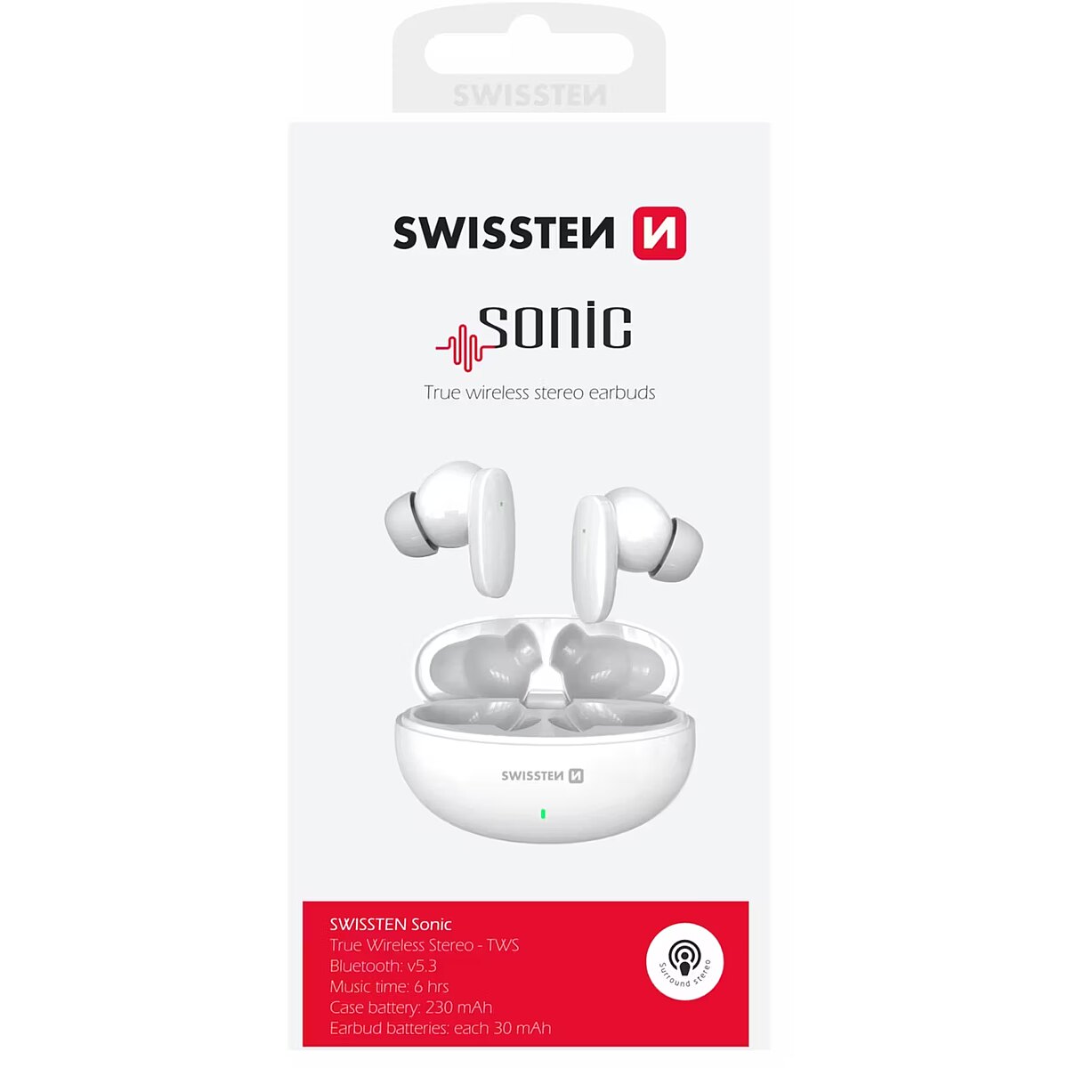 Hear your music like never before with SWISSTEN SONIC earphones. Whether you're hitting the gym, traveling or relaxing in the comfort of your home, SWISSTEN SONIC keeps you connected to your audio world. Easy to take anywhere with a sleek and clean design, the 230mAh rechargeable case ensures you always have plenty of power.