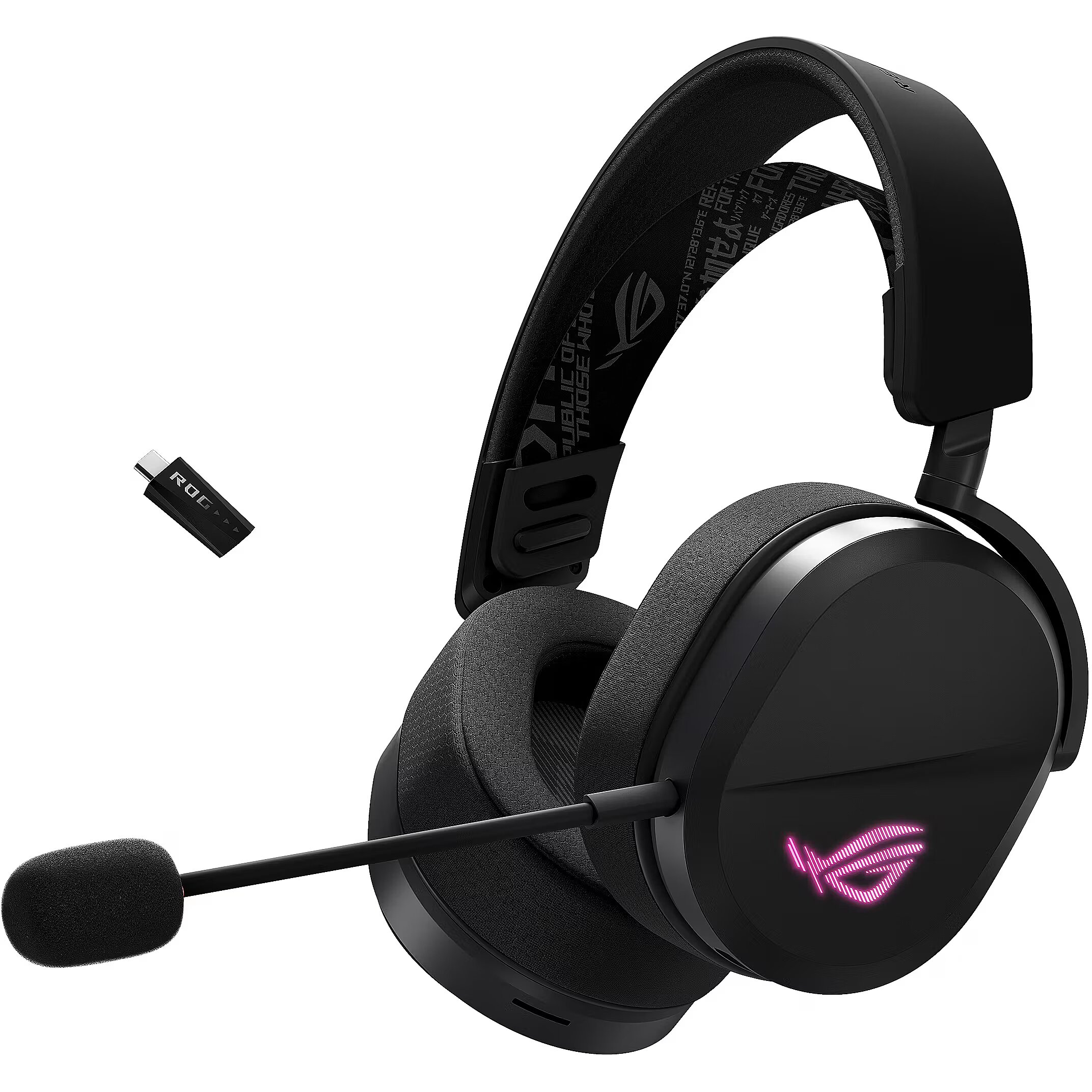 LongProductName - Tri-mode RGB gaming headset with ROG SpeedNova wireless technology, 50 mm ROG titanium-plated diaphragm drivers, refined wireless sound signature, 10 mm super-wideband boom microphone, lightweight 309-g design, plus ASUS Aura Sync RGB lighting
