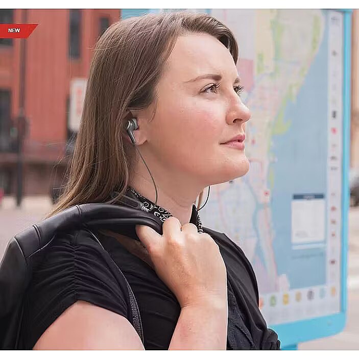 Tehniskā informācija > Citas funkcijas - -Iebūvēts mikrofons un tālvadības pults (atskaņošana/pauze, ieslēgšana/izslēgšana, skaļums, atbildēšana/izbeigšana u. c.) -Atturīgs pret sviedriem -Kabeļa vadības klips -Trīs spilvenu izmēri (mazs, vidējs un liels)