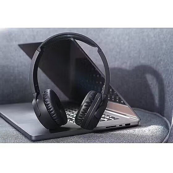 Lekka, ergonomiczna konstrukcja nauszna z regulowanym pałąkiem pokrytym materiałem imitującym skórę, wyściełanymi nausznikami dla pewnego i wygodnego dopasowania. Długi czas pracy na baterii
