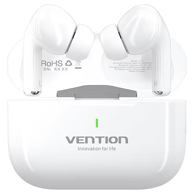 Summary - Vention Echo Lite E11. Product type: Headset. Connectivity technology: True Wireless Stereo (TWS), Bluetooth. Recommended usage: Calls/Music. Wireless range: 10 m. Cable length: 0.25 m, Product colour: White