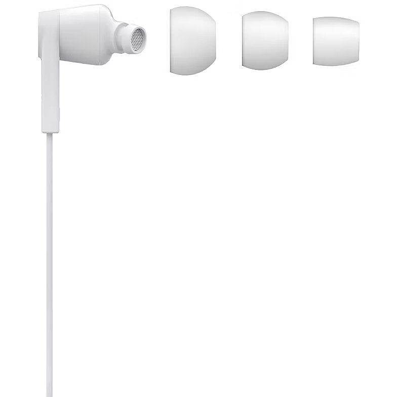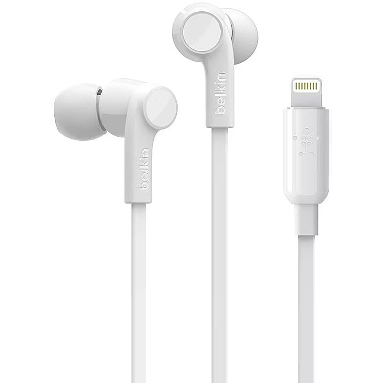Description - Headphones with Lightning Connector TAKE A JOURNEY INTO SOUND With high quality sound, supreme comfort and fit, and exceptional durability, SOUNDFORM Headphones with Lightning Connector are the headphones you, and your iPhone, have been waiting for. Packed with features, including water-resistance and noise-isolation, these compact headphones deliver superior audio without distraction so you can lose yourself in music, be transported to a different world with an audio book, or experience the highs and lows of every story with compelling podcast content. THE BELKIN DIFFERENCE Pioneer in innovation and technology for over 35 years Innovative design provides a perfect fit to your ear for superior sound and noise isolation Comprehensive testing procedures guarantee quality and durability MFi-approved for added peace of mind A PERFECT FIT FOR A PERFECT SOUND Perfectly-fitting headphones create a far superior sound. SOUNDFORM headphones combine ear tips that can be tailored to your ear, with a design that actively directs the sound towards your eardrum. The result is excellent noise isolation, so you can be sure you are experiencing the music as the artist intended. Every drumbeat, every lyric, every instrument and every breath in the original recording is clearly replicated for your ear. With playback this flawless, the only thing that might get lost is you. COMFORT IS MUSIC TO YOUR EARS Poorly-fitting earbuds are a main contributor to headphone discomfort. With three differently-sized ear tips provided with SOUNDFORM headphones, it's easy to find the right fit for a more comfortable listening experience. Holding the ear tips, angled drivers reduce strain on your ear, so you can enjoy all-day comfort, and listen to the music you love, for as long as you like. SWEAT AND SPLASH-RESISTANT Wherever you listen to music, your SOUNDFORM headphones are designed to go with you. This is why we made them sweat and splash-resistant making them ideal for all-weather use, as well as fitness or gym sessions. LONG LASTING DURABILITY Over 35 years' experience in designing cables has taught us a few things. SOUNDFORM headphones are highly flexible and reinforced at major stress points, to withstand heavy use in multiple environments. Comprehensive testing procedures, covering everything from sustained usage to extreme environmental conditions, guarantee durability.