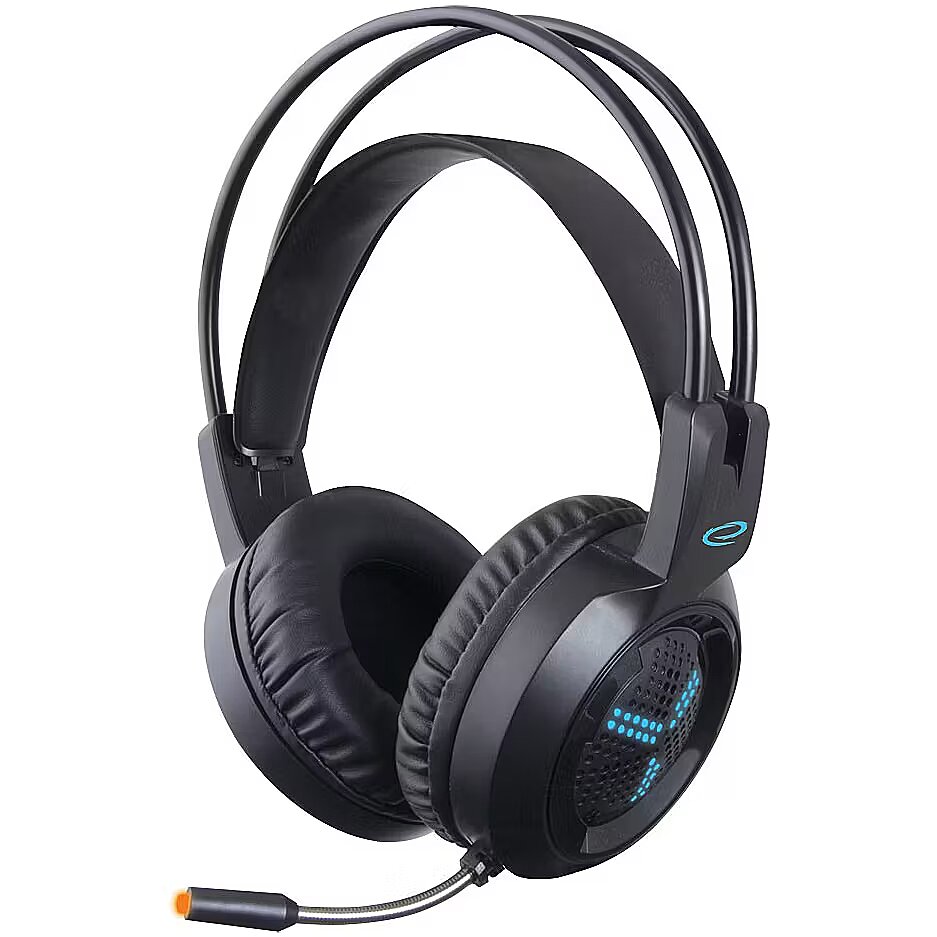 Description - High quality, classic design stereo illuminated headphones with microphone and volume control. Easy adjustable, elastic headband. Big, soft ear cushions are covered with noise canceling leatherette material.  Compatible with all popular sound cards and audio devices. Enjoy high quality sound during long hours of playing games, in music listening, movie watching and during talking by internet communicators. TECHNICAL DATA: LED illuminated soft ear cushions volume controlsensitivity: 105dB at 1kHz impedance: 32 frequency response: 20Hz-20.000Hz rated power: 150mW microphone frequency response: 30Hz to 16.000Hz microphone sensitivity: -58dB2dB cable length: 2m plug: stereo 3.5mm x1, USBx1