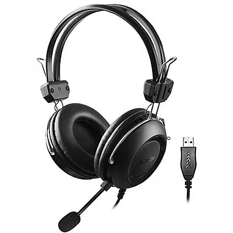 ShortDescription - USB austiņas | vadu austiņas | mikrofons | regulējams galvas laksts | melns | 2m | skaļuma regulēšana