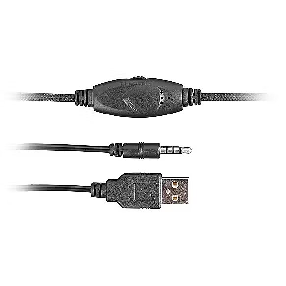 Apraksts - Vadu/Bezvadu: Vadu, Tips: Uz ausīm, Kategorija: Datorspēlēm, Vada garums: 2 m, Mikrofons: Iebūvēts, Vadība: Ir, Savienojums: 3.5mm/ USB, Pretestība: 32 Ohm, Jutīgums: 96 db, Frekvenču diapazons: 20-20000 Hz, Trokšņu slāpēšana: Nav, Garantija: 2 gadi