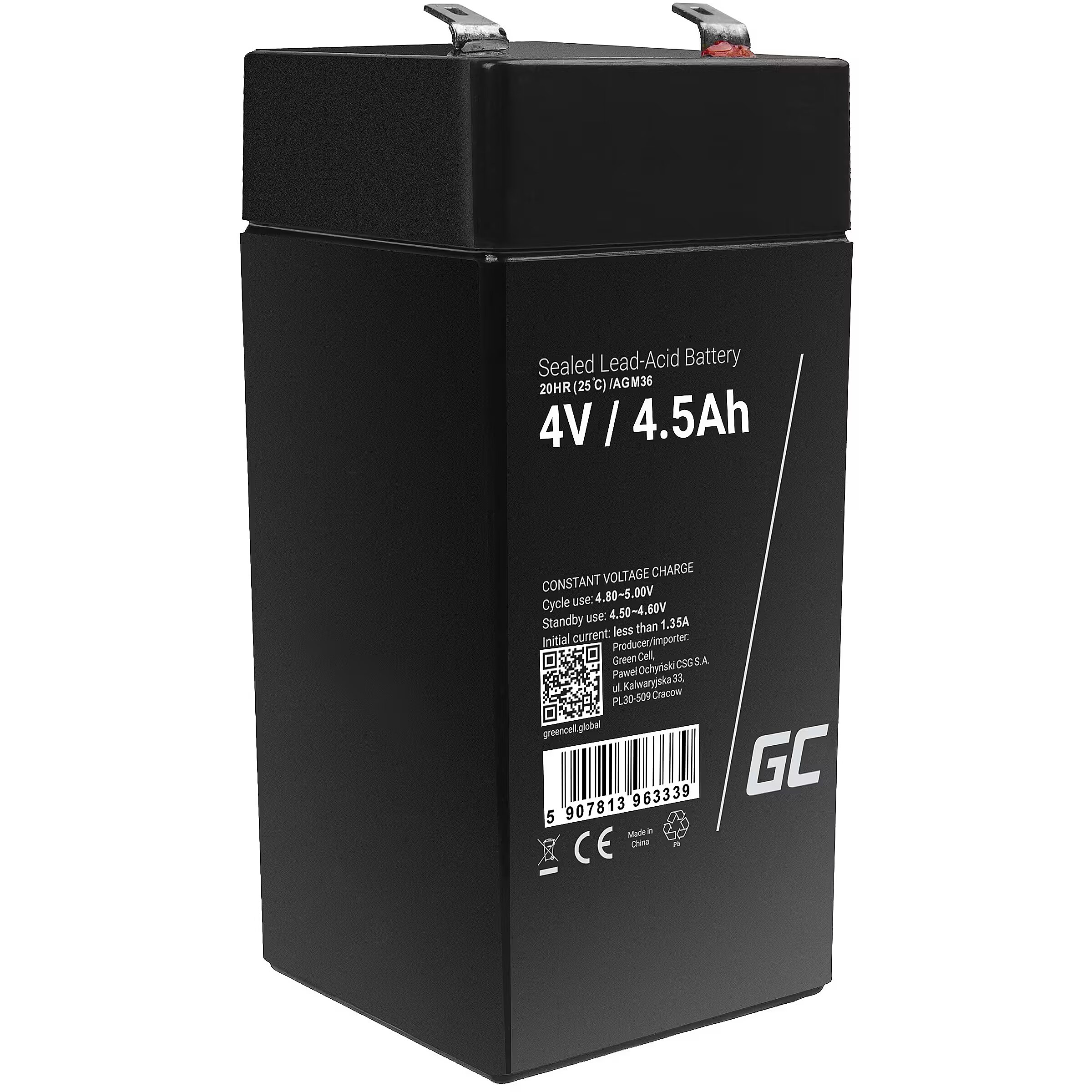 Apraksts - Green Cell AGM VRLA 4V 4,5Ah neuzturīgs akumulators rotaļlietu kases signalizācijas sistēmai