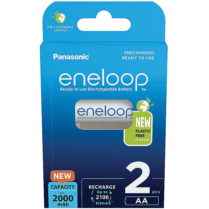 Description - Eneloop rechargeable AA 2000 mAh 4 Pcs. + box The quality you deserve The minimum capacity of this product is 2000 mAh. If you need to use them straight out of the box this is possible as they have been pre-charged. Do you often lose your batteries? You won't have this problem as they come with a practical case. This will come in handy especially when travelling. Importantly, they have a voltage of 1.2 volts. Bet on the environment This product has up to 2,100 life cycles. This means that you will recharge them many times and, importantly, it is better than batteries. By replacing the batteries, you reduce waste. It is also very economical. If you charge them but don't use them after a few years they will retain 70% charge. Do you care about the planet? The packaging has been made without the use of plastic. Opt for a conscious product.