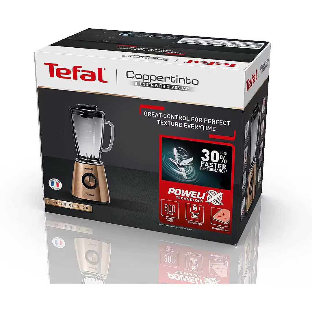 MediumDescription EN - Great control for perfect texture every time • The Tefal Blendforce 2 Coppertinto blender comes complete with user-friendly controls, an innovative design and uncompromising performance thanks to its 6 Powelix blades.