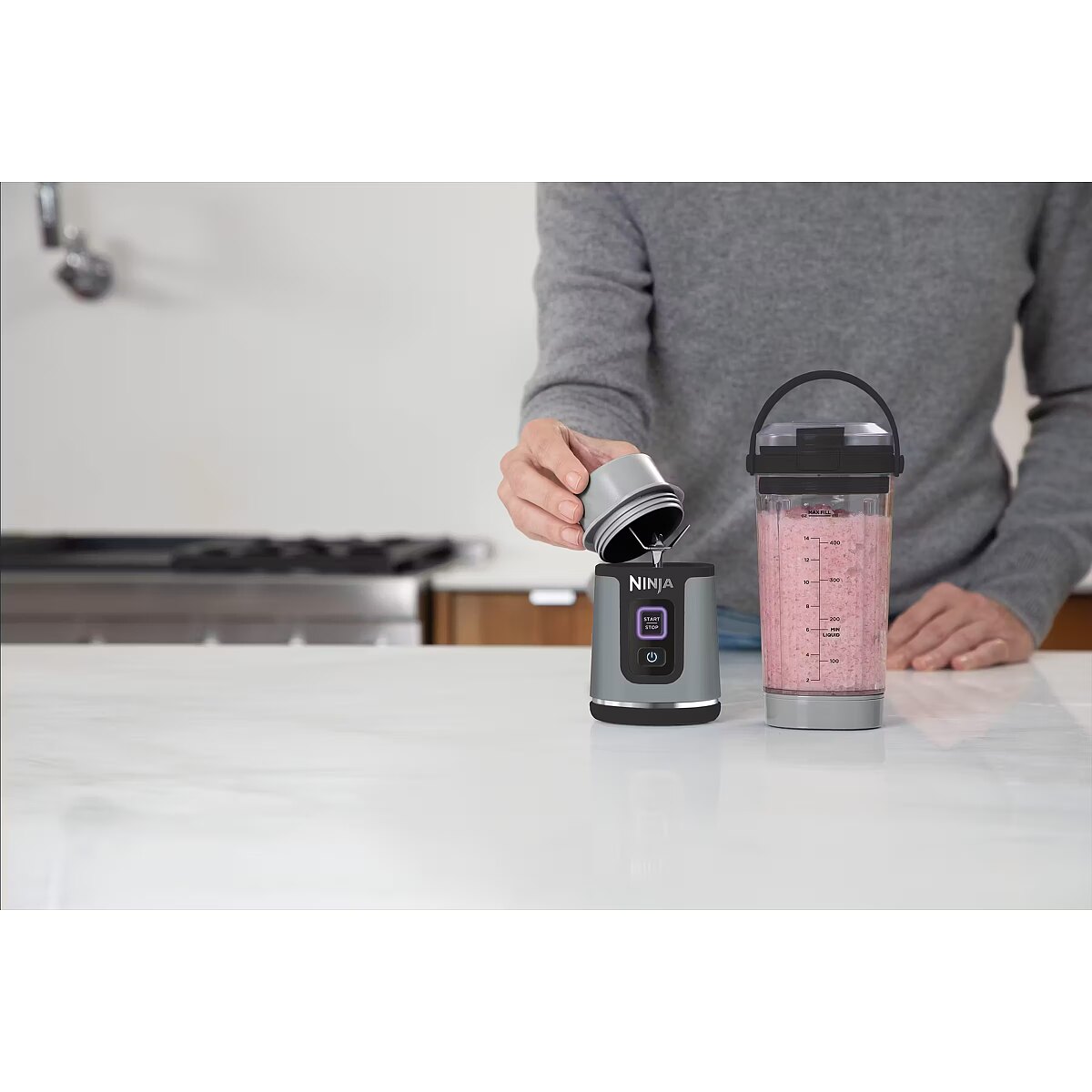 Nosaukums - NINJA | Portatīvais bezvadu blenderis | BC151EUBK | Portatīvais | Burkas materiāls BPA-free | Burkas tilpums 0,53 L | Ledus drupināšanas | Melns/pelēks