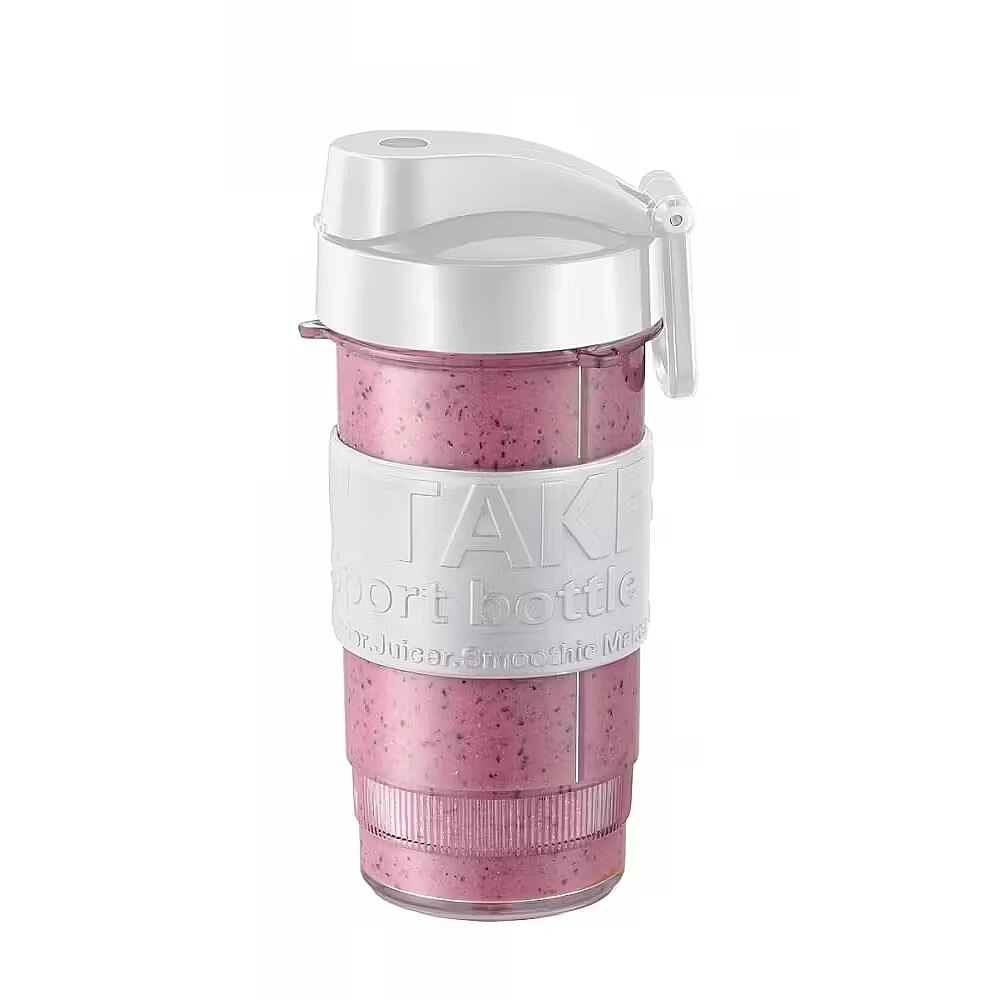Butelki miksujące można łatwo zamontować bezpośrednio na bazę smoothie makera, co zapewnia wygodę użytkowania. Każda z nich jest wyposażona w silikonowy uchwyt zapewniający bezpieczne trzymanie oraz pokrywkę z ustnikiem i zaczepem, ułatwiającym przenoszenie. Dzięki temu rozwiązaniu możesz zabrać swój ulubiony napój wszędzie, bez obaw o rozlanie. Tritan i stal nierdzewna: materiały o długiej żywotności