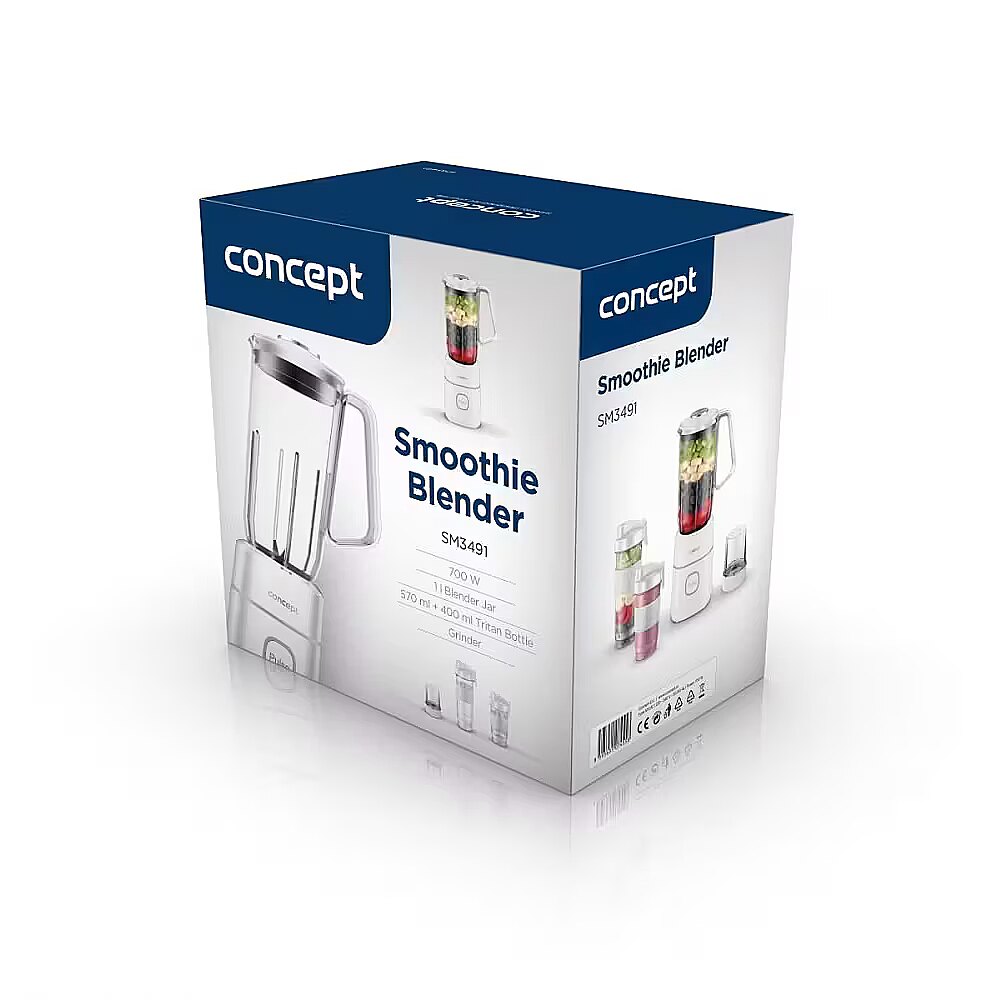 Apraksts - Smūtijveidīgo dzērienu blenderis 700 W 1 x 570 ml 1 x dzirnaviņas SM3491 Blenderējiet gudri: dzērienus, mērces un garšvielas bez piepūles 700 W smūtijveidīgais blenderis SM3490 nodrošina lielisku veiktspēju ātrai smūtijveidīgo dzērienu, kokteiļu un mērču pagatavošanai. Tam ir trīs blendēšanas trauki, kas izgatavoti no izturīga tritāna - liels viena litra trauks ar praktisku rokturi un divas mazākas pudeles, kas ideāli piemērotas līdzņemšanai līdzi. Ierīcei ir arī garšvielu dzirnaviņas, kas ievērojami palielina tās funkcionalitāti. Nerūsējošā tērauda asmeņi ir noņemami, viegli tīrāmi un nodrošina efektīvu un vienmērīgu blendēšanu. Šis blenderis kļūs par neaizstājamu palīgu ikvienam, kurš vēlas ēst veselīgi un ērti. TO GO komplekts: ideāls risinājums blenderēšanai ceļā Blenderēšanas pudeles var viegli uzmontēt tieši uz kokteiļlietu gatavošanas pamatnes, lai tās būtu ērti lietot. Katra no tām ir aprīkota ar silikona rokturi drošai turēšanai un vāciņu ar iemuti un klipsi ērtai pārnēsāšanai. Izmantojot šo risinājumu, varat paņemt līdzi savu iecienīto dzērienu jebkur, neuztraucoties par izliešanu. Tritāns un nerūsējošais tērauds: ilgmūžīgi materiāli No tritāna izgatavoti maisīšanas trauki ir ideāla izvēle mūsdienīgai virtuvei, pateicoties to vieglajam svaram, izcilajai izturībai un noturībai pret bojājumiem. Pat pēc ilgas lietošanas tie saglabā savu dzidrumu un nesatur BPA, nodrošinot veselības drošību. Tie ir noturīgi pret traipiem, smakām un karstumu, tādējādi tos ir viegli tīrīt un pagarina to kalpošanas laiku. Asie nerūsējošā tērauda naži garantē precīzu un efektīvu blendēšanu, ilgāk saglabājot asumu. Dzirnaviņas ar diviem nerūsējošā tērauda nažiem SM3490 Smoothie maker ir aprīkots ar praktisku dzirnaviņu ar diviem nerūsējošā tērauda nažiem, kas nodrošina efektīvu un vienmērīgu malšanu. Asmeņus var viegli noņemt, un dzirnaviņas var apstrādāt ne tikai garšvielas un kafijas pupiņas, bet arī riekstus, sēklas, žāvētus augļus un garšaugus. Viegla lietošana Smūtijveidotāja lietošana ir ļoti vienkārša, izmantojot vienu pogas pieskārienu. Viss, kas jums jādara, ir pareizi jāuzliek trauks uz ierīces pamatnes un nedaudz jāpagriež pulksteņrādītāja kustības virzienā. Pateicoties drošības slēdzenei, jūs esat pārliecināts, ka blenderis neieslēgsies, ja pudele nebūs pareizi piestiprināta.