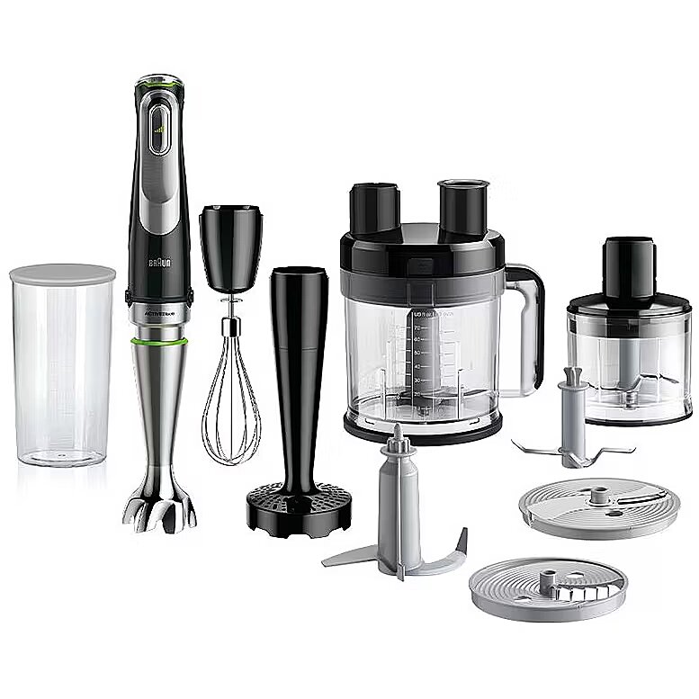 LongDesc - Braun’s most powerful 1200W highly efficient motor. Up to 6 times finer blending result¹ and 60% faster performance² for tastier, smoother results with no unwanted pieces. With the worlds first ActiveBlade metal wand the blade moves up and down blend even the hardest foods .Advanced SmartSpeed The more you squeeze the more power you get. Featuring an extra-large control button for better handling and comfort. SPLASHControl technology Improved anti-splash for cleaner kitchens.Compatible with straight cut attachmentsThis motor unit is compatible with all Braun attachments with straight cut design.Active PowerDrive technologyUp to 6 times finer blending result¹ and 60% faster performance² for tastier, smoother results with no unwanted pieces. ¹ vs. MQ100 on raw vegetable soup ² vs. MQ100 on carrot juiceActiveBlade TechnologyWorld’s first ActiveBlade moves up and down blend even the hardest foods. 2.5 times more active cutting zone³. Up to 40% less effort needed⁴. ³ vs. MQ700 ⁴ vs. MQ700 on raw potatoimode technologyDelivers precise results and ease of use on variety of tasks. Select your speed settings from pulse, low speed, high speed to create your ideal recipe with a touch of a button.Advanced SmartSpeedThe more you squeeze the more power you get. Featuring an extra-large control button for better handling and comfort.SplashControl TechnologyImproved anti-splash for cleaner kitchens.EasyClick system PlusImproved connection to exchange accessories faster and easier.1200W efficient motorBraun’s most powerful 1200W highly efficient motor.XL Food processorNew 3.2l bowl (2.0L working capacity) that chops, slices (thin and thick), shreds (fine and coarse), julienne, French fry and even kneads 2 times more dough (500g)⁵. ⁵ vs. MQ70500ml Chopper / Ice knifeNew and improved with 20% faster performance⁷ chops meat, hard cheese, nuts, herbs and even ice cubes in seconds. ⁷ vs. MQ30Purée / masher accessoryEffortlessly purée and mash cooked vegetables to a silky smooth result.WhiskEasily whips, beats and stirs eggs, cream, fluffy dessert from low to high speed.600 ml BPA-free plastic beakerThe 600 ml plastic beaker is BPA free and features ml and fl. oz. measurement markings. *BPA-free for all parts intended to be in contact with food. Based on third-party testing.