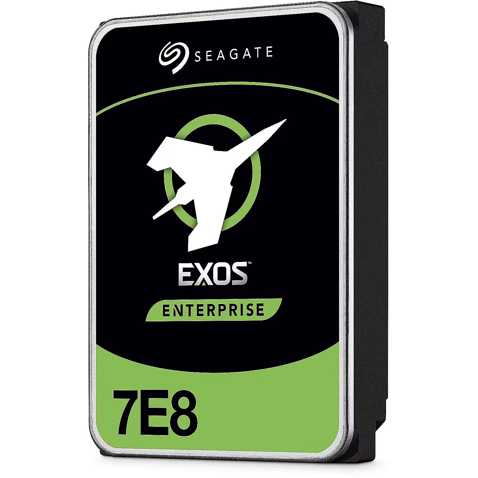 LongDesc - The Seagate® Exos® 7E8 enterprise hard drive confidently stores up to 8 TB ofdata without sacrificing performance. The secure, high-capacity, high-performancedrives are optimised for demanding enterprise bulk data applications.Enterprise Drive for Bulk Data ApplicationsExos 7E8 hard drives support up to 8 TB per drive, offering bulk data storage for data centre infrastructures requiring a highly reliable enterprise hard drive. Exos 7E8 provides costeffective, reliable access to unstructured data. Built on field-proven 10th-generation conventional magnetic recording (CMR) technology, the Exos 7E8 drive helps to catalyse the datasphere, enabling data centre architects and IT professionals to deliver trusted performance, rock-solid reliability, ironclad security, and low TCO for demanding 24×7 operations.Robust Bulk Data Storage for a 24×7 WorldExos 7E8 drives are backed by a 2 million hour MTBF rating and support workloads of 550 TB per year — 10× that of desktop hard drives. With state-of-the-art cache, on-the-fly error-correction algorithms, and rotational vibration design, the Exos 7E8 helps ensure consistent performance in replicated and RAID multi-drive systems.High Performance for Mainstream Data Centre ApplicationsMeet your storage workload requirements in the most efficient and cost-effective data centre footprint on the market today. The Exos 7E8 delivers easy integration into bulk storage systems with 12 Gb/s SAS and SATA 6 Gb/s interface options. With user-definable innovative technology advancements like PowerChoice™ and Seagate RAID Rebuild®, you can tailor your nearline storage requirements for even greater improvements in lowering your TCO.Enhanced Reliability, Data Protection, and SecurityAdvanced security features help protect data where it lives — on the drive. Exos 7E8 prevents unauthorised drive access and safeguards stored data with security features that include Secure Downloads & Diagnostics, TCG-compliant Self-Encrypting Drive, and government-grade FIPS/Common Criteria tamper-resistant hard drive.2 Seagate Secure™ drives simplify drive repurposing and disposal, help protect data-at-rest, and comply with corporate and federal data security mandates.