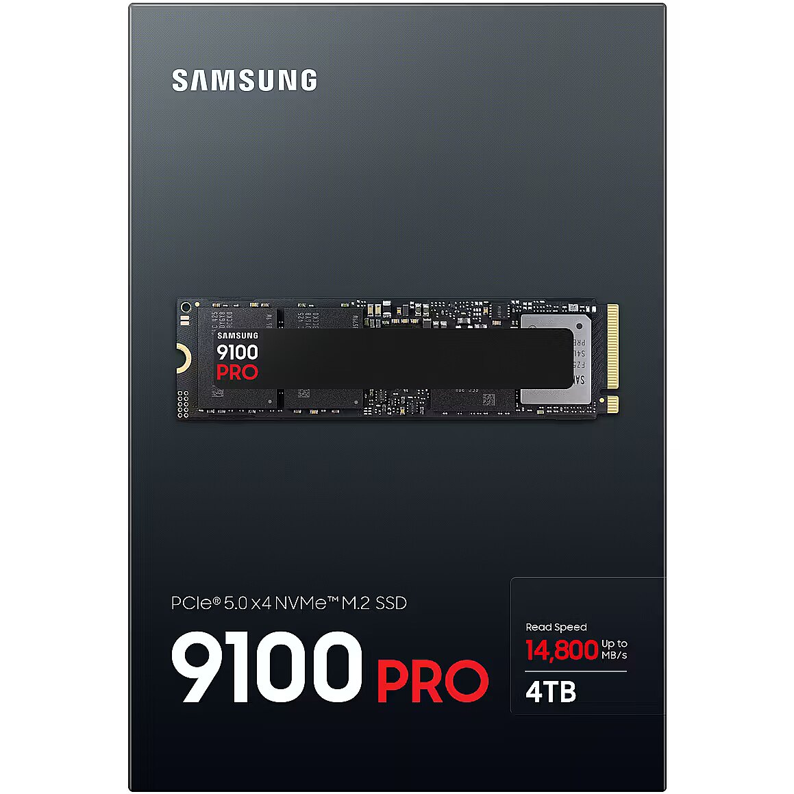 LongSummaryDescription - Samsung 9100 PRO PCIe® 5.0 NVMe™ M.2 SSD - 4 TB. SSD capacity: 4 TB, SSD form factor: M.2, Read speed: 14800 MB/s, Write speed: 13400 MB/s, Component for: PC/Game console