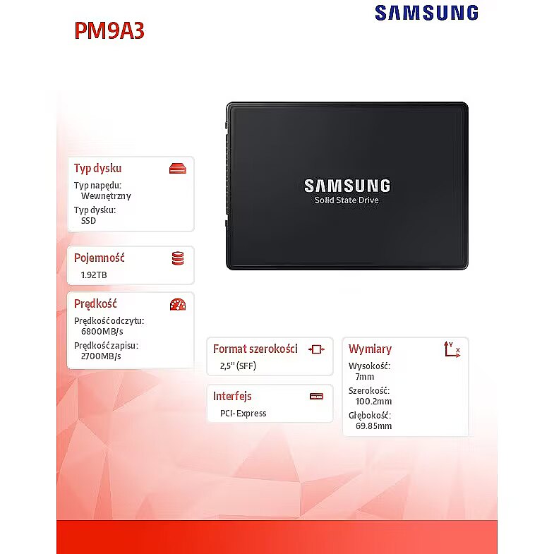 Nosaukums - Samsung PM9A3 1,92 TB 2,5" PCI Express 4.0 NVMe V-NAND TLC