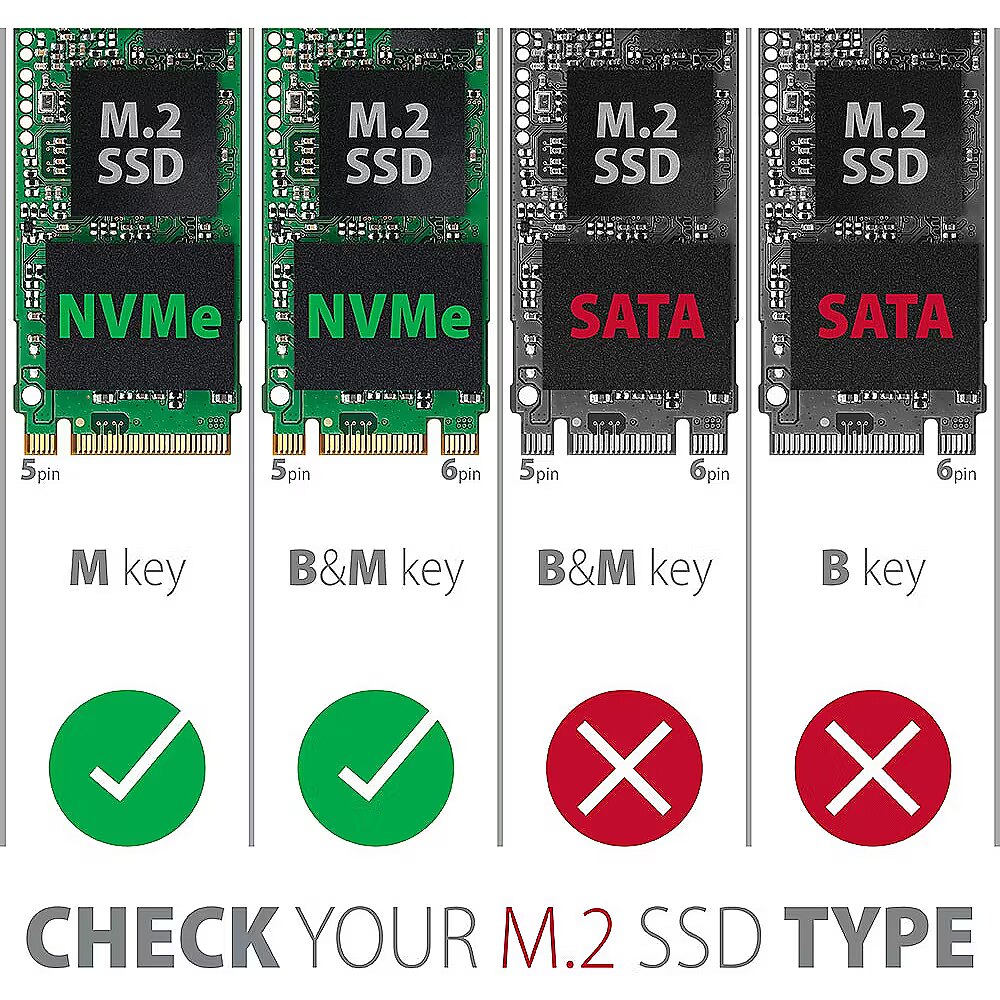Iekļautie piederumi - - USB-C 10 Gb/s ārējā kaste M.2 SSD diskam, - USB-C - USB-C kabelis 20 cm garš, - 3 siltumvadītspējīgi spilventiņi, - montāžas materiāls un skrūvgriezis.