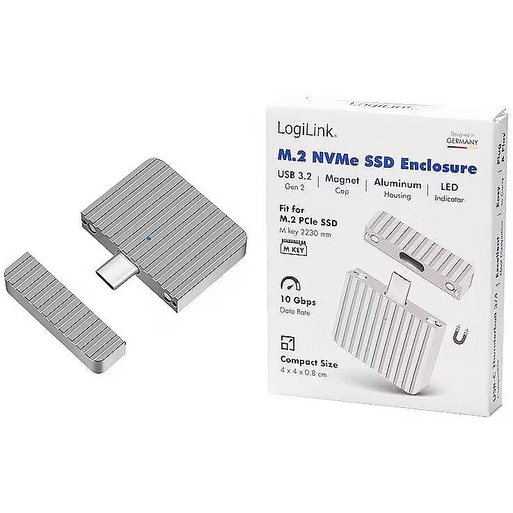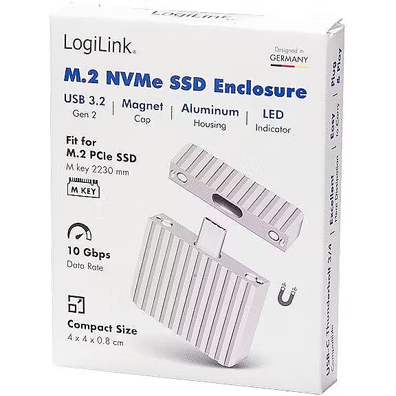 Description - This ultra-compact SSD enclosure combines high performance with maximum portability. Thanks to the USB 3.2 Gen 2x1 specification and a data transfer rate of up to 10 Gbit/s, it allows you to transfer your data at lightning speed. The enclosure supports PCIe NVMe M.2 SSDs according to the M-Key 2230 standard. Whether you're moving large files, editing high-resolution videos, or simply accessing your data quickly, this enclosure is the perfect companion.