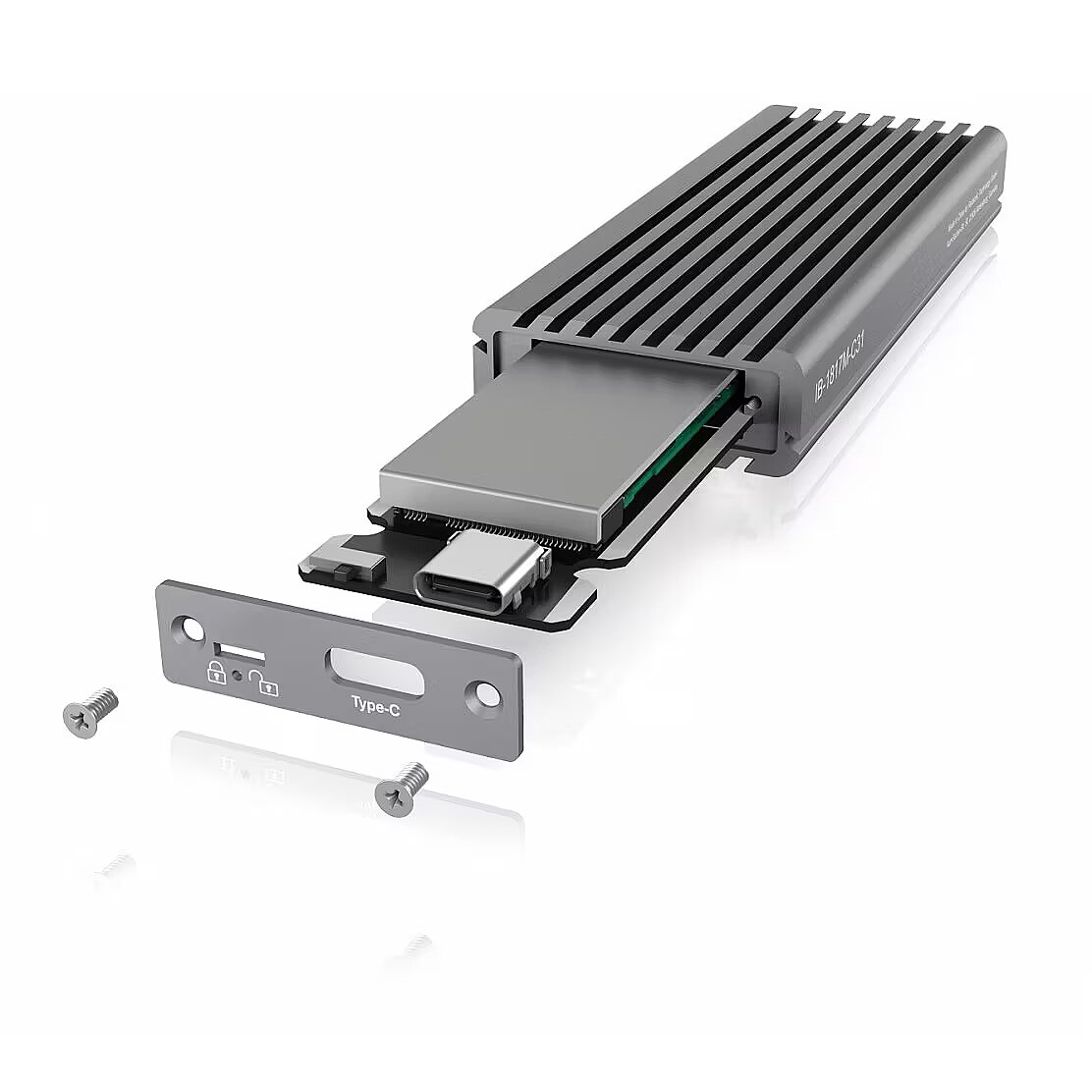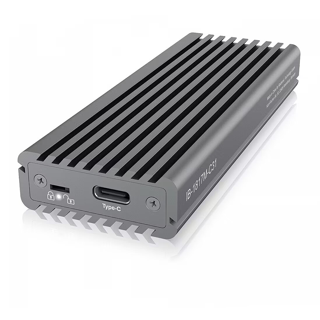 LongDesc - Keep it coolThe patented cooling plate transfers the resulting heat from the SSD to the housing and cools the SSD optimally. This prevents the early reduction of the transfer rate to protect from overheating. With the IB-1817M-C31, data can be sent permanently from A to B at a maximum transfer rate of up to 10 Gbit/s.Time is valuableThe IB-1817M-C31 is compatible with M.2 cards of 30, 42, 60 and 80 mm length, operating system-independent and suitable for a variety of applications such as high-speed storage, cloning a drive or running a mobile operating system. All this happens with a data transfer rate with up to 1000 Mb per second. Compared to data transfer with a SATA drive, a data volume of 50 gigabytes is now transferred in 50 seconds instead of 1:36 minutes.Click - SafeWith the IB-1817M-C31, sensitive data on the installed M.2 SSD can be protected from changes by a simple switch. The write protection switch can be moved to the desired position using the supplied mini tool and a small hand movement. Click - safe.