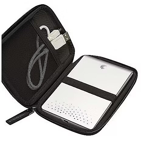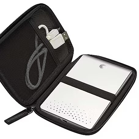 Other features > Special features - • Crush-resistant molded EVA protects portable hard drive• Interior elastic strap to secure portable hard drive in place• Inner pocket storage for cord• Zippered closure• Unique ribbed molding details on exterior & interior• Fits most 2.5” portable hard drives