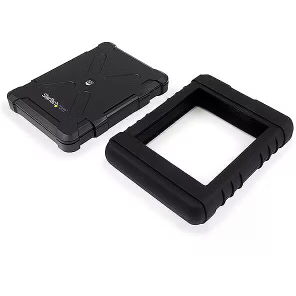 LongSummaryDescription - StarTech.com Rugged Hard Drive Enclosure - USB 3.0 to 2.5in SATA 6Gbps HDD or SSD - UASP. Product type: HDD/SSD enclosure. Number of storage drives supported: 1, Storage drive size: 2.5", Supported storage drive interfaces: Serial ATA, Maximum storage capacity: 2 TB. Data transfer rate: 5 Gbit/s. Hot-swap. Product colour: Black. USB connector type: Micro-USB B