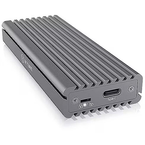 Apraksts - Ārējais C tipa ārējais korpuss M.2 NVMe SSD augstas kvalitātes alumīnija korpuss ar inovatīvu siltuma izvadītāja dizainu PCIe 3.0 x4 datu pārraides ātrums līdz 20 Gbit/s M-Key ligzda M.2 NVMe SSD, 22x 80 mm Saskarne ar galveno datoru: USB 3.2 (2 x 2 paaudzes), C tips Atpakaļ saderīgs ar USB 3.1/3.0/2.0. Ietver papildu vara radiatoru un silikona termisko spilventiņu iekšpusē Atbalsta Windows, macOS.