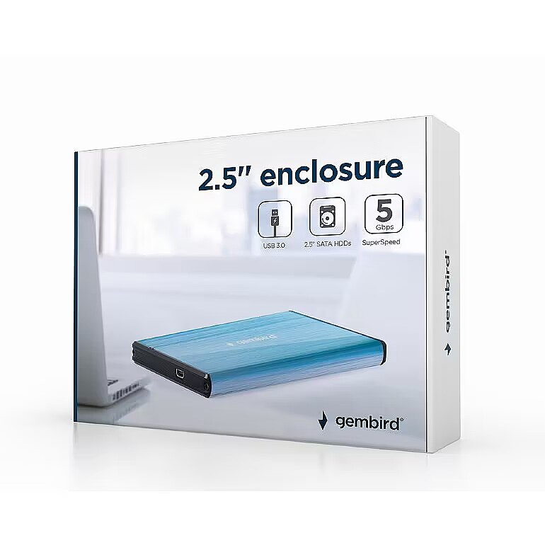 Description - GEMBIRD USB 3.0 2.5'' enclosure, brushed aluminum, blue GIGABYTES IN YOUR POCKET SuperSpeed USB 3.0 data transfer! Suitable for all 2.5'' SATA HDDs Windows 10 compatible