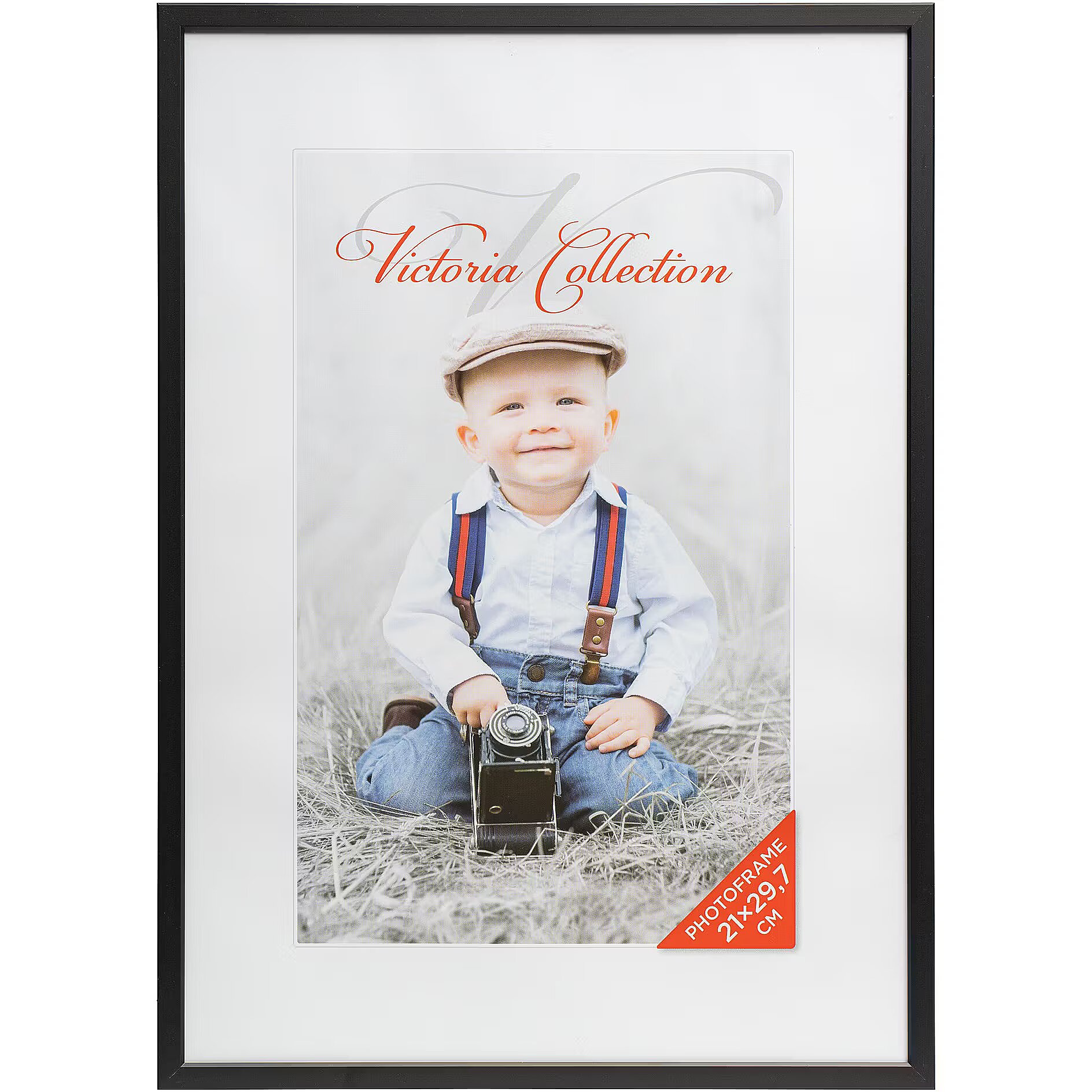 description_short_ru - Minimālistisks fotorāmītis no Victoria Collection sērijas Ar melnu alumīnija rāmi Eņģes sienas iekāršanai Uztur 21×29,7 cm/A4 fotoattēlu.