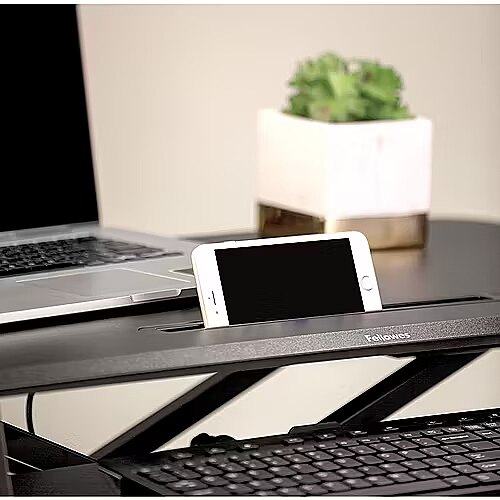LongDesc - Fellowes Sit Stand darbstacija papildina jūsu darba dienu ar kustību, lai palīdzētu jums strādāt un justies labāk - bez piepūles. Pārāk daudz stundu, kas pavadītas pie rakstāmgalda, kaitē jūsu veselībai, tāpēc Corsivo sēdošs darba galds ir būtisks jūsu darba vietai. Pārveidojiet savu mazkustīgo rakstāmgaldu par dinamisku sēdēšanas darbstaciju un papildiniet savu darba dienu ar kustībām, lai saglabātu aktivitāti un veselību. Viegli pārejiet no sēdoša uz stāvošu rakstāmgaldu, izmantojot gāzes atsperes augstuma regulēšanas funkciju, kas ļauj bez piepūles mainīt darba pozīciju. Corsivo sēdošs darba galds piedāvā divu līmeņu lielu darba virsmu, kas ļauj elastīgi uzstādīt divus monitorus vai monitoru un klēpjdatoru. Šis stāvgalds ļauj ērti turēt tālruni vai citus piederumus ērti sasniedzamā attālumā, izmantojot ērtu ierīču kanālu. Viegla uzstādīšana - vienkārši pievienojiet papildu tastatūras paliktni, un jūs esat gatavs izmantot savu sēdvietu galdu.
