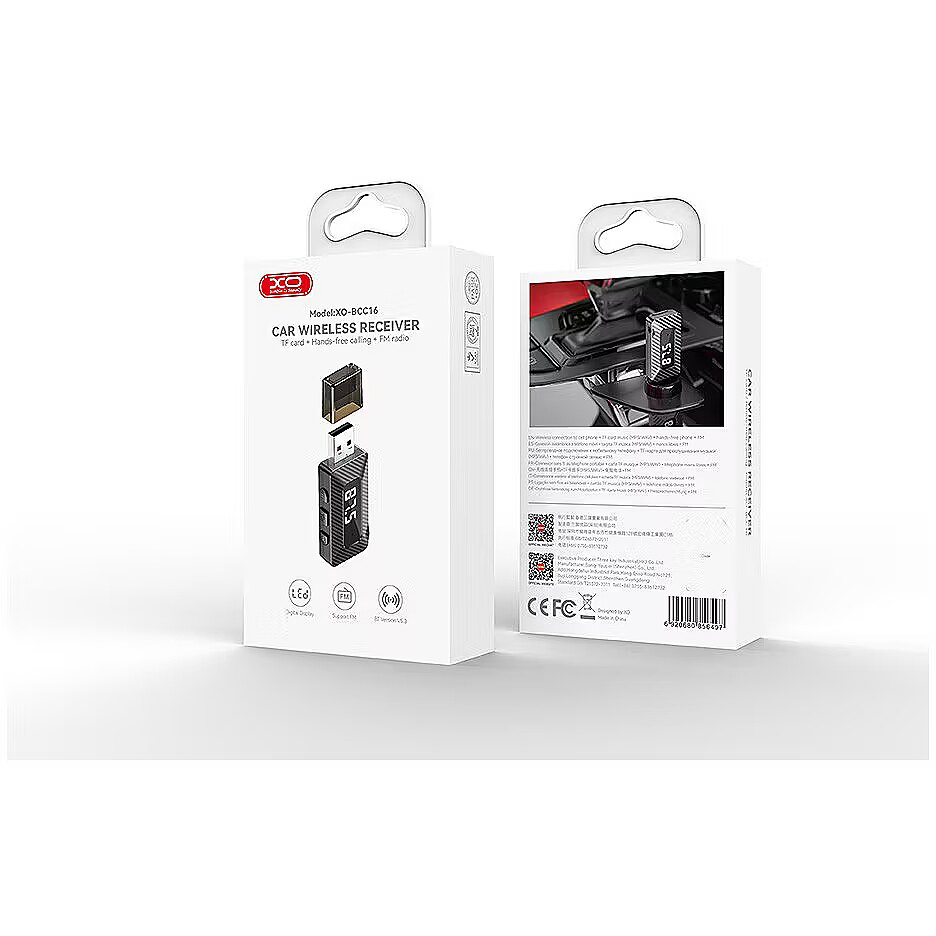 description_en - The XO BCC16 Car Bluetooth Transmitter is your ultimate solution for wireless audio streaming and hands-free calling in your car. With Bluetooth version 5.3 and a powerful main chip, enjoy seamless connectivity and high-quality audio transmission. Featuring a sleek black design and compact size, it easily fits into any setup. With a wide range of supported features, including A2DP, AVRCP, HSP, HFP, and support for MP3/WAV playback formats, it ensures versatile and efficient performance. Plus, with FM transmitter functionality, enjoy broadcasting your favorite tunes directly to your car stereo. Powered by USB DC 5V input, connect effortlessly to your car's power source and start streaming music and making hands-free calls right away. The ABS construction ensures durability, while the compact dimensions make it easy to place in your car. .