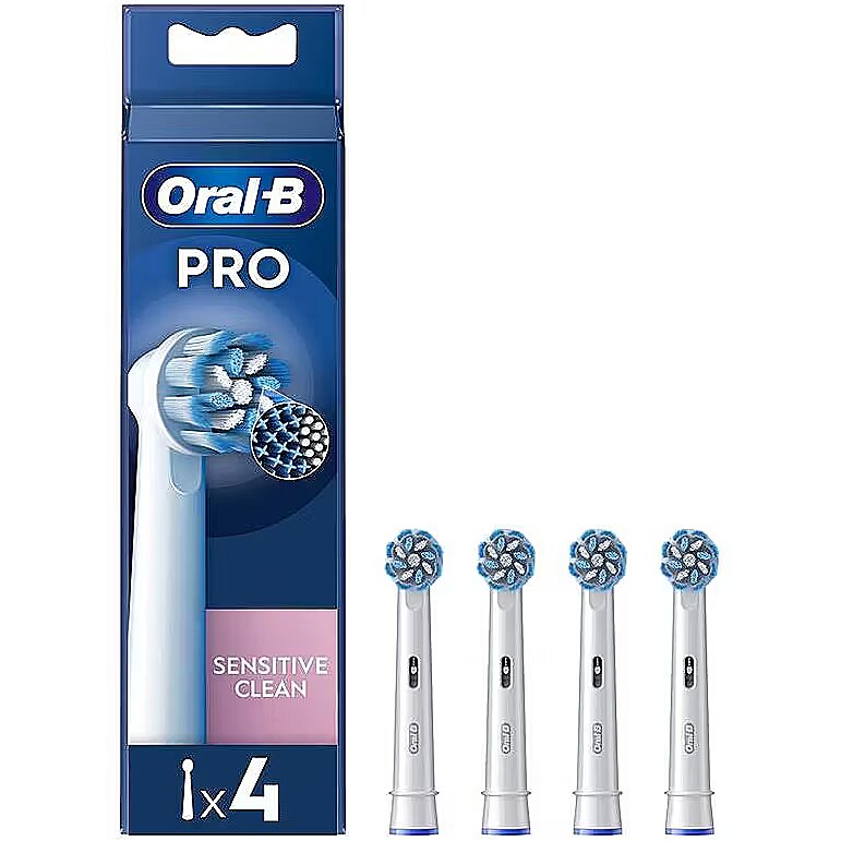 MediumDescription EN - Oral-B Sensitive Clean Pro - extra brushes for your electric toothbrush. The Oral-B Sensitive Clean Pro toothbrush has extra soft bristles that protect the gums and regular bristles that effectively remove plaque. It removes up to 100% more plaque and reduces gingivitis by 100% compared to a manual toothbrush. Oral-B's unique toothbrush heads are designed with new X-shaped bristles that reach hard-to-reach areas. The tip bristles change color from green to yellow, reminding you when the tip needs to be replaced to maintain 100% cleaning efficiency. Guaranteed compatibility with all Oral-B rechargeable electric toothbrush handles, except Pulsonic and iO. • Removes up to 100% more bacterial plaque for cleaner teeth and healthier gums compared to a manual toothbrush;