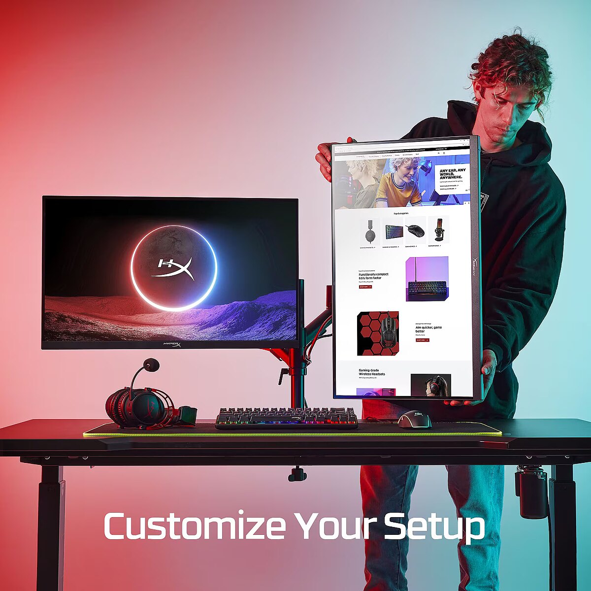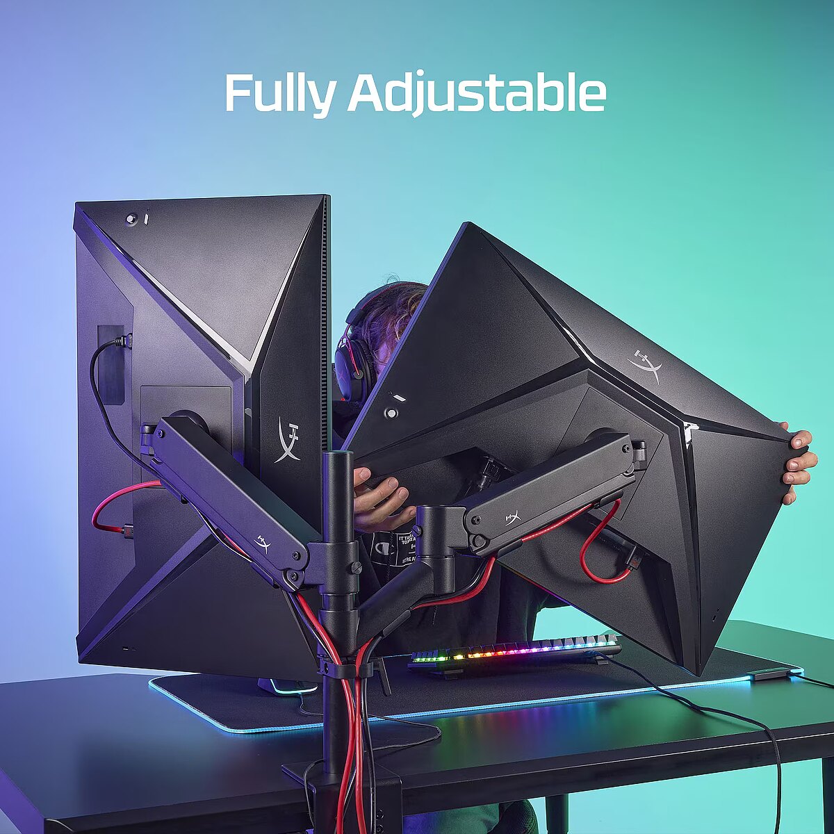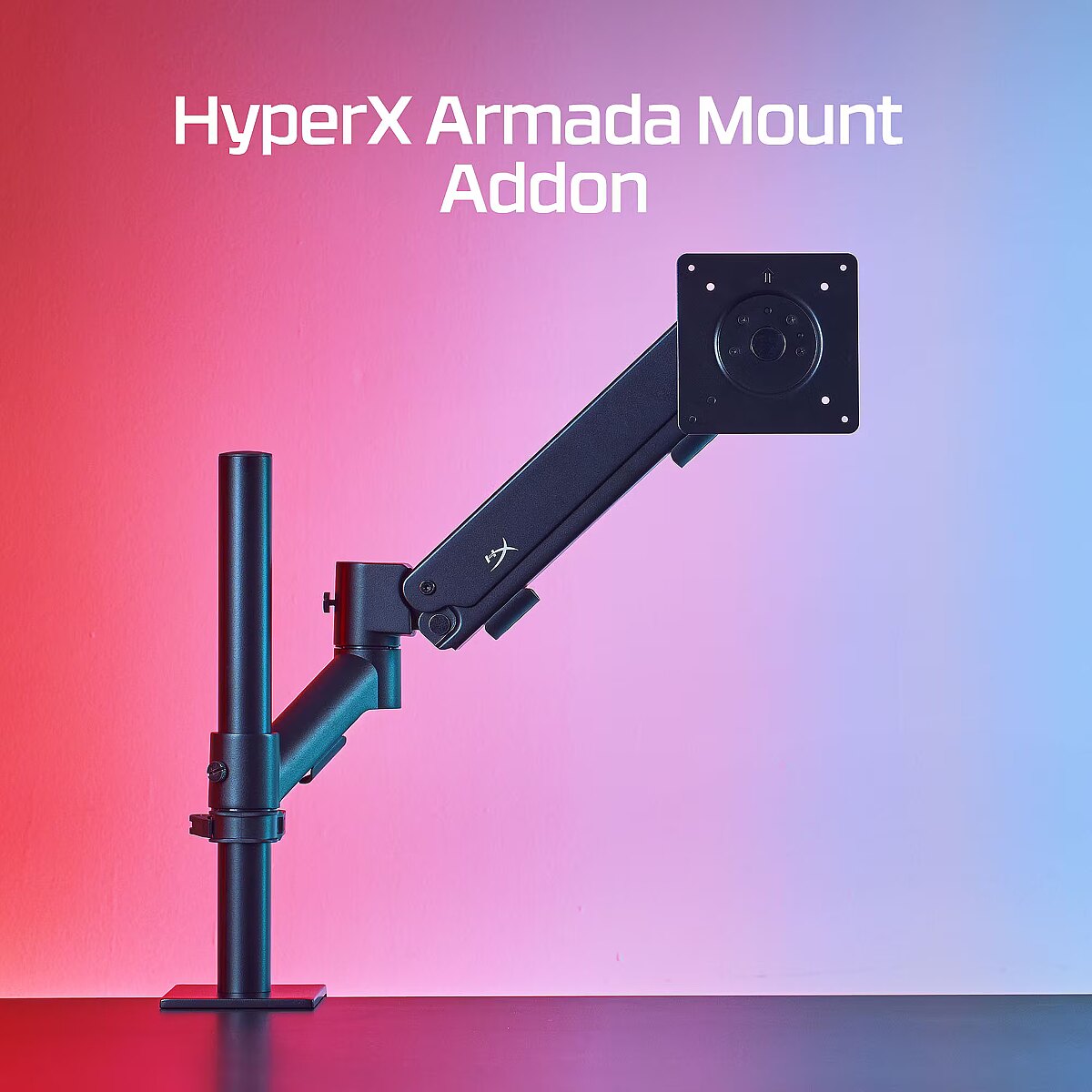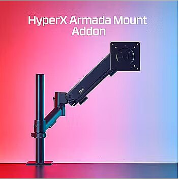 LongDesc - Additional arm for major multi-tasking.The HyperX Armada Gaming Mount Addon is an additional arm mount compatible with all HyperX monitors and most displays that use VESA 75mm and 100mm patterns. Simply attach the arm to the back of the monitor and mount it to your Armada Single Gaming Mount’s base, and repeat for a space-saving multi-display setup. Each metal arm is solidly constructed and can support monitors up to 32 inches in size, and 20 pounds in weight.