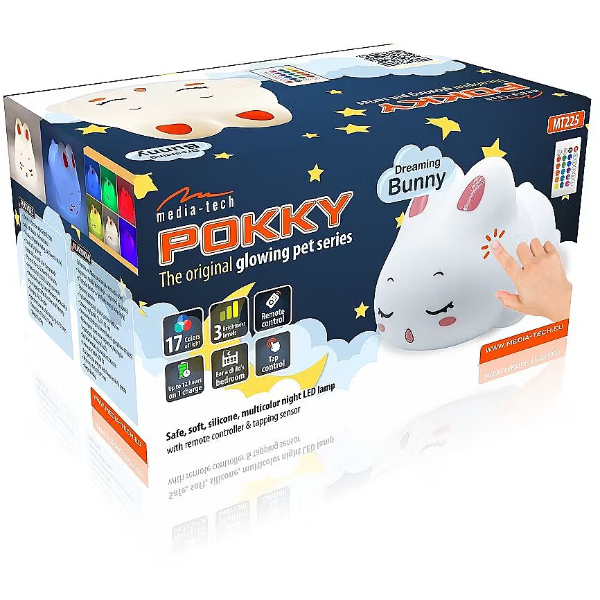 Silikonowa lampka nocna POKKY MT225 marki Media-Tech to idealne rozwiązanie dla każdego dziecka. Jej miękka, bezpieczna konstrukcja oraz szeroki wybór kolorów sprawiają, że staje się niezastąpionym towarzyszem podczas wieczornych przygód i nocnego wypoczynku.