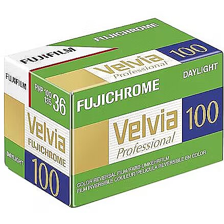 description_en - Fuji has come up with Velvia 100, which offers the same superb color saturation and palette that have made Velvia 50 the film of choice for leading landscape and nature photographers - but with finer grain and twice the speed. ISO 100 At ISO 100, Fujichrome Velvia 100 provides a more useful speed for greater flexibility in varied shooting situations. Ultra-high-saturated color reproduction Color saturation is an important feature of Fujichrome 50. Recognizing this, and by incorporating advanced cyan, magenta, and yellow couplers as well as CEL (Color-Extension Layer) technology, new Fujichrome Velvia 100 gives photographers the saturation they require with the added advantages of higher speed and finer grain. Super-fine grain Fujichrome Velvia 100 boasts an RMS granularity of 8, a significant improvement over Velvia 50 and ranking it alongside other Fujifilm professional film products, such as Fujichrome Astia 100F, Fujichrome Provia 100F and Fujichrome Velvia 100F. Improved color stability The new color couplers employed in Fujichrome Velvia 100 significantly improve color stability and freedom from fading/shift over conventional films. Improved versatility Fujichrome Velvia 100 can accept push/pull processing from - 1/2 stop to + 1 stop with minimal changes to color balance and gradation. Push can even be extended to up to 2 stops, depending on the subject, allowing easy and precise correction of exposure and density.