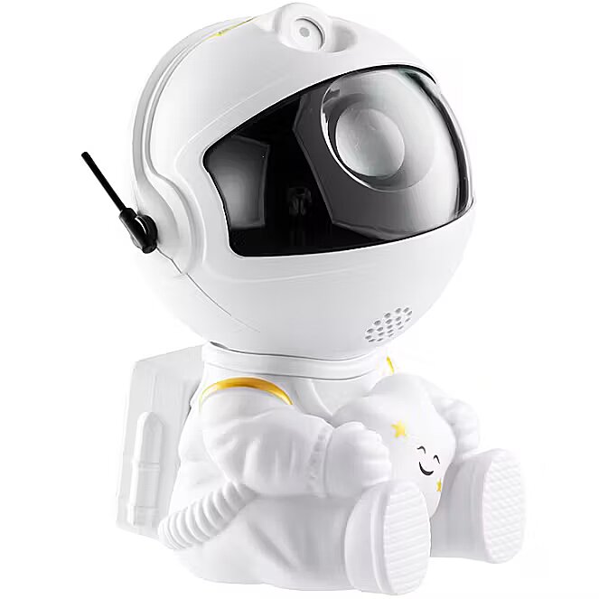 description_en - RoGer A2 is an astronaut-shaped projector of stars and galaxies is a spectacular gadget from XO. The projector projects colorful and moving patterns of galaxies and laser stars. The set includes a remote control that can control the lighting intensity and change the displayed images. The projector is located in the astronaut's magnetic head, which allows you to adjust the angle of light. The best effect is obtained in darkened rooms when the projector is directed at flat surfaces. The device is powered by a USB cable.