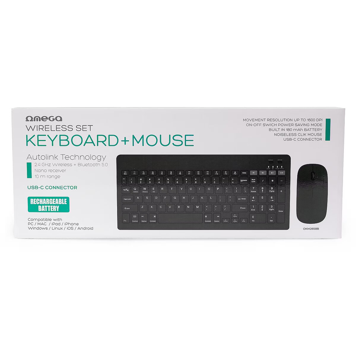 description_lv - Omega bezvadu tastatūras un peles komplekts piedāvā perfektu stila, komforta un funkcionalitātes kombināciju. Šis ergonomisko ierīču komplekts ir savienojams gan ar 2,4 GHz bezvadu savienojumu, gan Bluetooth 5.0, nodrošinot vienmērīgu un stabilu darbību līdz 10 metru rādiusā. Tastatūrai ir iebūvēts 180 mAh akumulators, kas nodrošina ilgstošu darbību ar vienu uzlādi. Tās zema profila taustiņi ir izstrādāti ērtai un klusai rakstīšanai, tāpēc tā ir lieliska izvēle gan darbam, gan atpūtai. Pele, kas aprīkota ar 500 mAh akumulatoru, piedāvā regulējamus DPI iestatījumus (800/1200/1600), lai pielāgotos dažādām vajadzībām un vēlmēm. Šī komplekta galvenā priekšrocība ir tā USB-C uzlādes iespēja, kas nodrošina ātru un ērtu enerģijas atjaunošanu. Turklāt pele ir izstrādāta tā, lai tā darbotos gandrīz bez trokšņa, veicinot mierīgu darba vai mācību vidi bez traucējošiem elementiem. Omega bezvadu tastatūras un peles komplekts ir saderīgs ar dažādām operētājsistēmām, tostarp Windows, Mac, iPad, iPhone, Linux un Android. Pateicoties modernajam dizainam un inteliģentajam enerģijas taupīšanas režīmam, šis komplekts ir ideāla izvēle lietotājiem, kuri novērtē gan funkcionalitāti, gan estētiku.