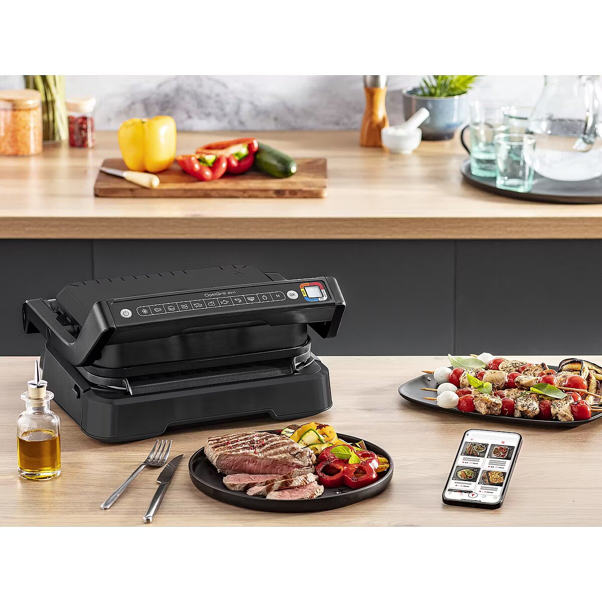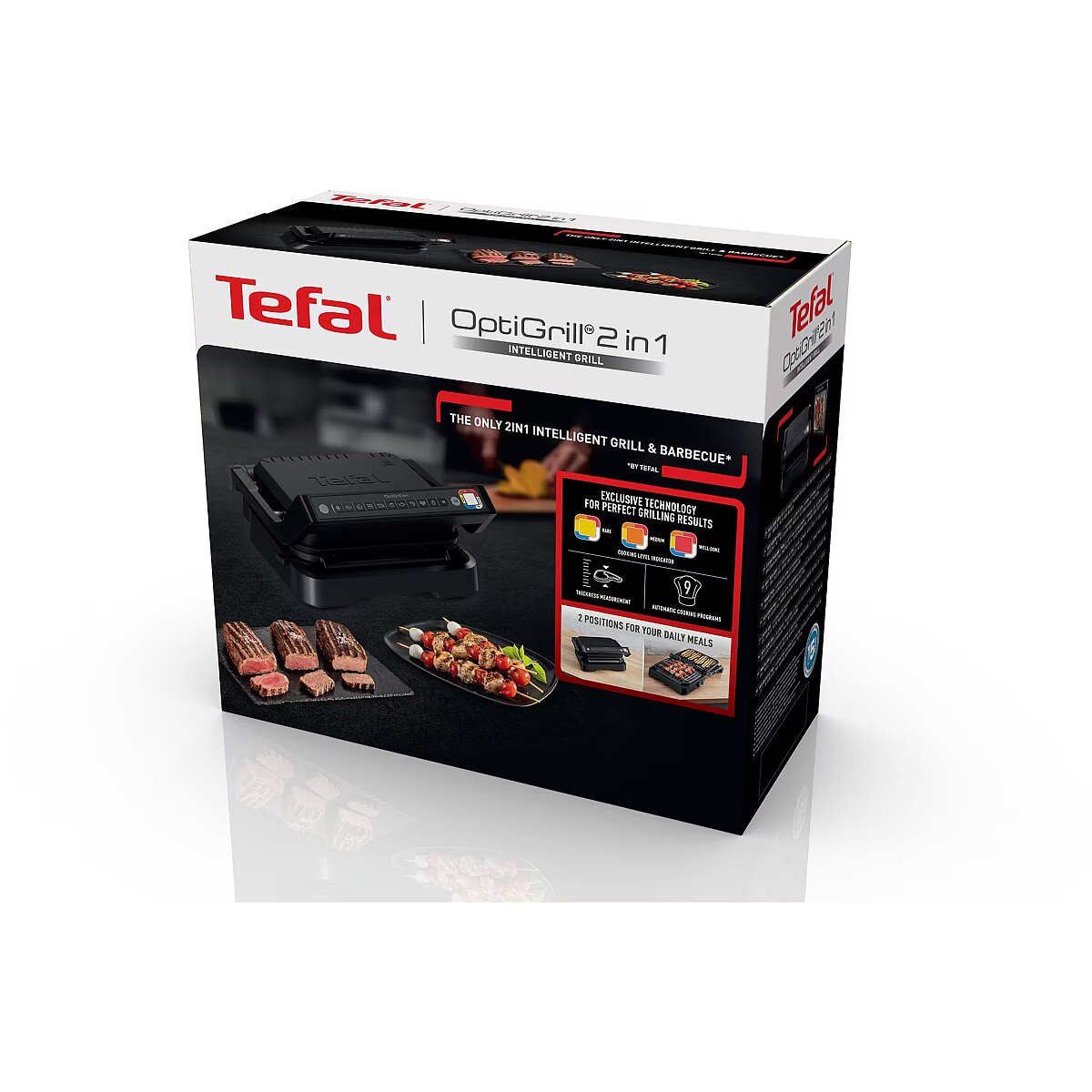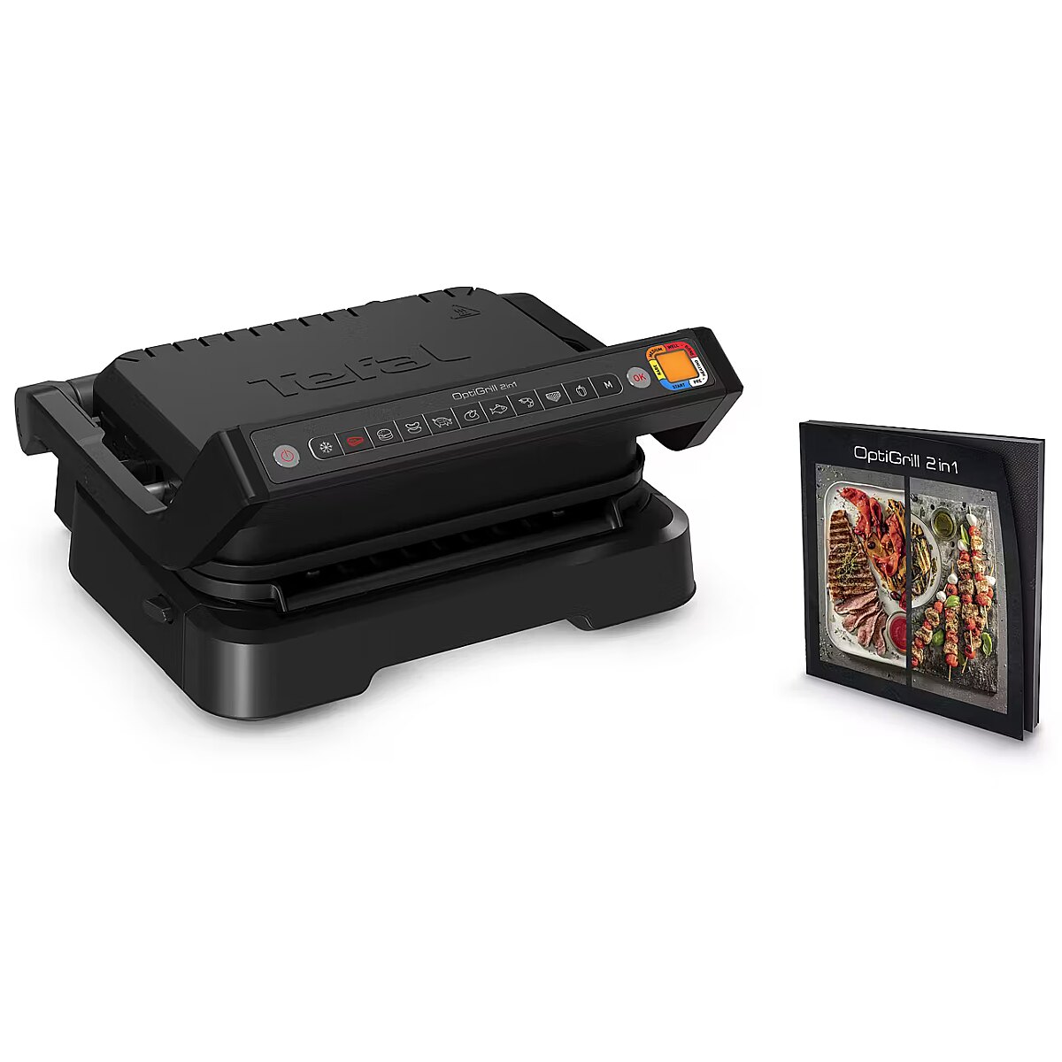 ShortSummaryDescription - Tefal OptiGrill 2in1 GC7728, melns, taisnstūrveida, pogas, 600 cm², 1 zona(-as), atvāžams vāks