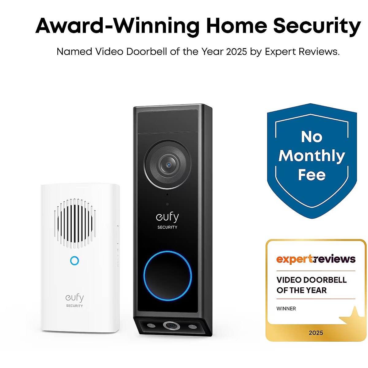 LongDesc - Get crystal-clear 2K HD resolution with dual cameras for a complete view of your doorstep. The front-facing camera captures your visitors in sharp detail, while the downward-facing camera provides a clear view of the ground and packages, so nothing goes unseen.Motion-activated lights at both the top and bottom, combined with advanced image processing technology, gives you colour vision at night and a clear view of up to 5 metres for added nighttime security. Meanwhile, the smart chime keeps you notified from anywhere in your home, so you never miss a knock.The E340 Video Doorbell won Expert Reviews’ Doorbell of the Year 2025, now its your turn to experience award-winning peace of mind.