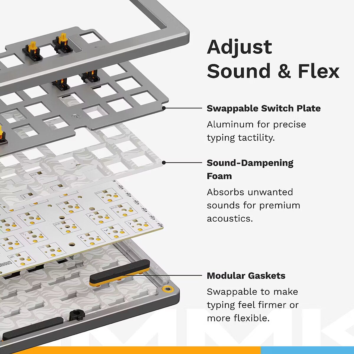 LongProductName - Glorious Gaming - GMMK 3 PRO Barebones Custom Keyboard Kit w/ Knob, Custom Modular Aluminum Body & Gasket System, Hotswappable TKL 75%, Sound Dampening Foam, Aluminum Switch Plate ANSI (Silver)