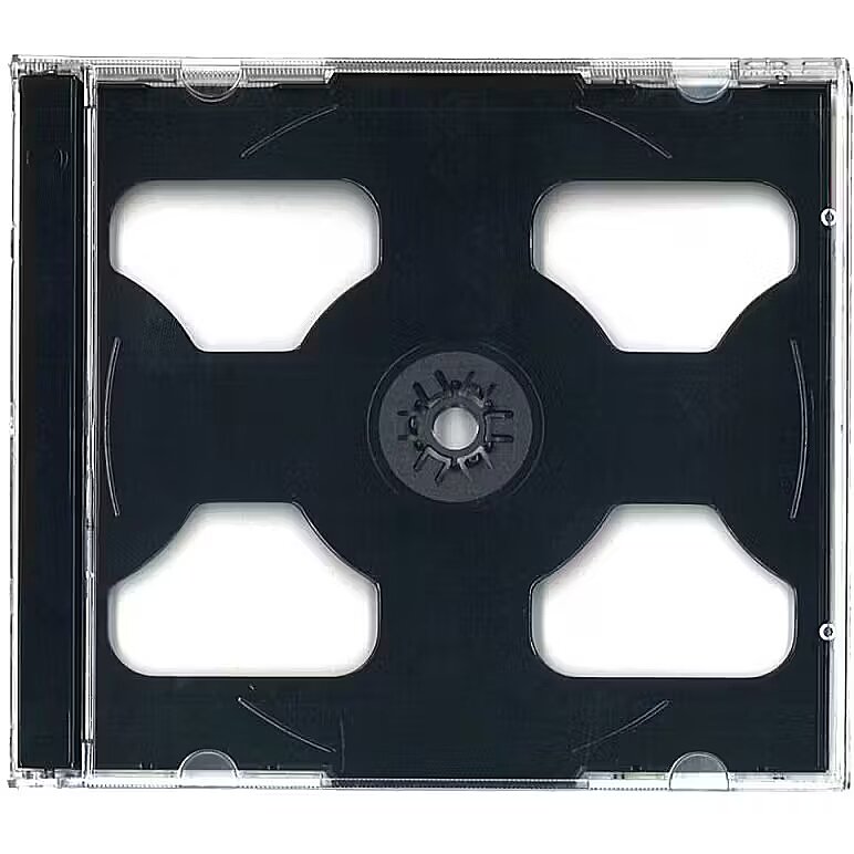 description_en - This case holds two CDs or DVDs. The classic transparent front and back cover with a black plastic middle insert provide a professional look and secure protection for the disc from scratches and dust. Standard CD case Suitable for all 12 cm & 8 cm discs Holds two discs Made of plastic Thickness: 10 mm