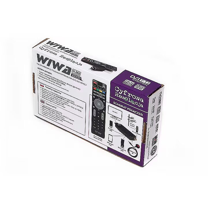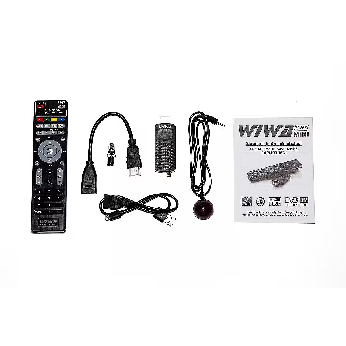 Accessories included - Tuner WIWA H.265 MINI Pilot zdalnego sterowania WIWA Memo Control Odbiornik podczerwieni Kabel USB z rozgaĹÄziaczem Kabel przedĹuĹźajÄcy HDMI ZĹÄczka antenowa SkrĂłcona instrukcja obsĹugi