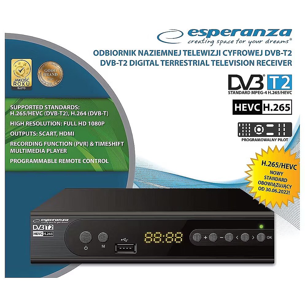 title_ru - Esperanza EV106P DVB-T2 H.265/HEVC ciparu TV uztvērējs