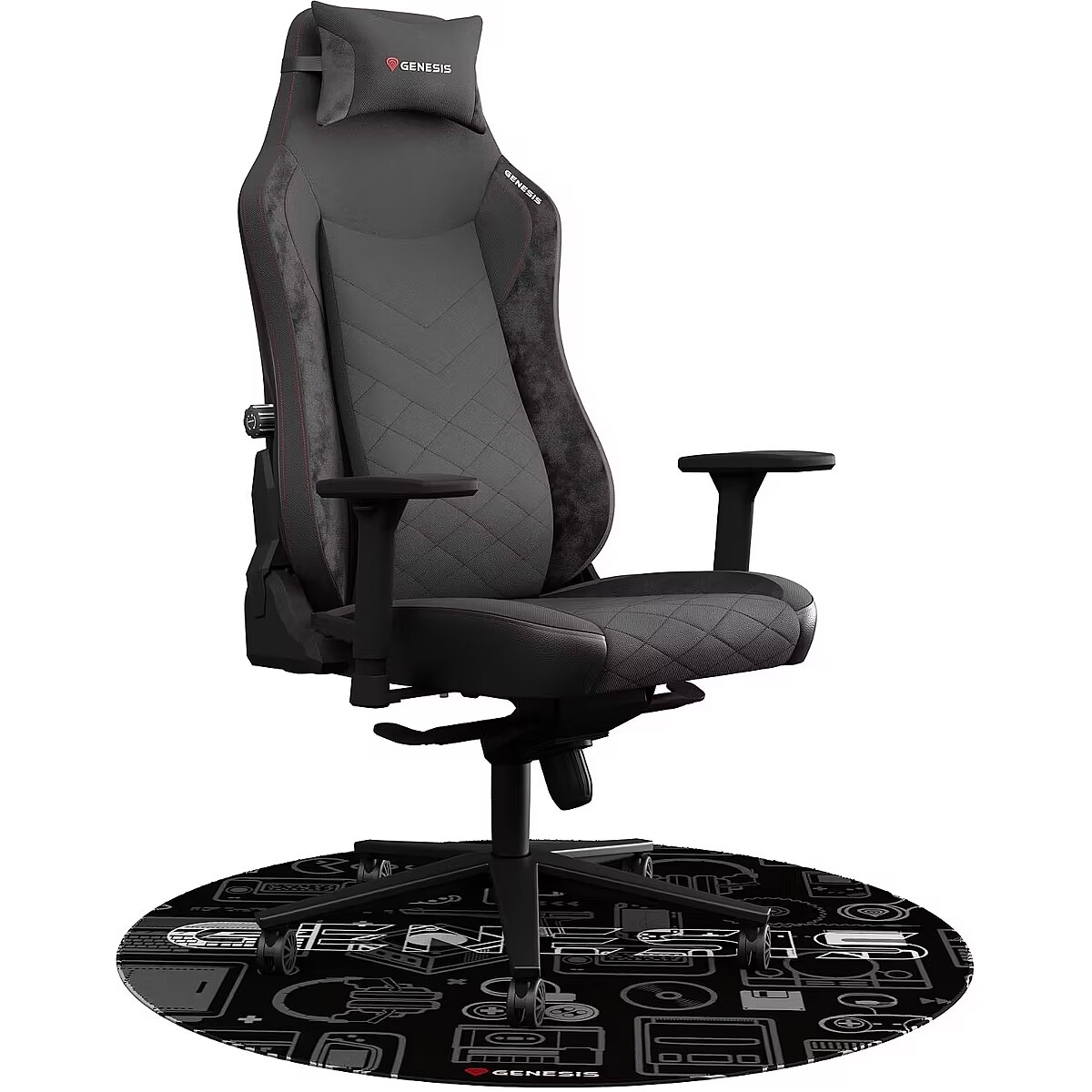 ShortSummaryDescription - GENESIS Tellur 300 Gear, Paklājiņš krēslam, melns, pelēks, balts, poliesteris, 1000 mm, 1 gab.(-s)