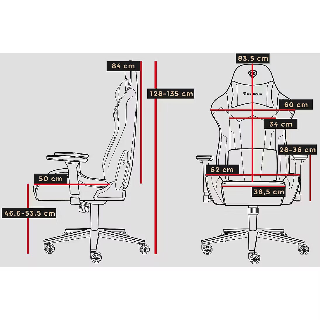 Tehniskie dati: Izstrādājumu grupa - Genesis spēļu krēsli