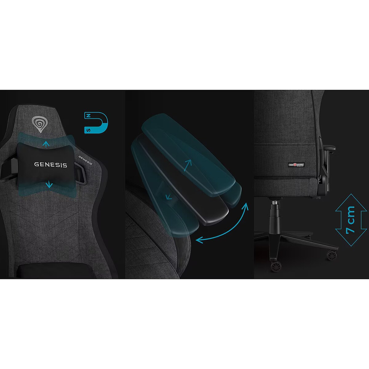 LongDesc - Genesis Nitro 660 ir ergonomisks krēsls, kas radīts spēlētājiem, kuri novērtē komfortu, izturību un funkcionalitāti. Izgatavots no mīksta, elpojoša un pret aizķeršanos izturīga auduma, tas nodrošinās ne tikai izturību, bet arī atbilstošu gaisa cirkulāciju, kas garantēs komfortu pat garās stundās, kuras pavadīsiet, spēlējot savas iecienītās spēles. Tā konstrukcijas pamatā ir izturīgs metāla rāmis, kas pildīts ar augstas kvalitātes deformāciju noturīgām putām, tāpēc krēsls parūpēsies par jūsu pareizu stāju. ERGONOMIKA VISUGSTĀKĀJĀ LĪMEŅĀ Vai jums ir svarīga ergonomika pie rakstāmgalda, strādājot vai spēlējot? Mēs arī! Genesis Nitro 660 krēsls ir aprīkots ar ērtiem, ergonomiskiem spilveniem: galvas balstu un jostasvietas spilvenu, kas izgatavoti no formu atveidojošām putām, kas lieliski pieguļ jūsu ķermenim. Turklāt galvas balsts ļaus regulēt tā pozīciju ar iebūvētu magnētu, lai komforts būtu pirmajā vietā neatkarīgi no jūsu auguma. PIELĀKOTAS KONTROLES FUNKCIJAS Mēs esam parūpējušies, lai krēsls piedāvātu plašu regulēšanas iespēju klāstu, ļaujot jums pielāgot tā augstumu un atzveltnes slīpumu atbilstoši savām vajadzībām. Regulējamie 2D roku balsti ļauj regulēt uz augšu/uz leju un uz sāniem, tāpēc jūs varat viegli nodrošināt sev ērtāko pozīciju pie rakstāmgalda. DROŠĪBA GADIEM Dēļ tā noturīgā auduma un stiprās metāla pamatnes krēsls būs noturīgs pret bojājumiem un pilnīgi stabils gadiem ilgi. Turklāt lielie riteņi ar CareGlide™ pārklājumu nozīmē, ka jums nav jāuztraucas par grīdas bojāšanu, jo tie aizsargā dažādas virsmas no skrāpējumiem, ļaujot krēslu brīvi pārvietot. DALĪGAS KOMFORTA IERĪCĪBAS Mēs jau minējām, ka Nitro 660 ir aprīkots ar atzveltnes regulēšanas mehānismu, un tas ir veidots tā, lai pēc intensīvas spēlēšanas jūs varētu kādu laiku atpūsties, pateicoties īpaši plašajam atzveltnes noliekšanas leņķim. Tā modernais dizains un funkcionalitāte padara to par ideālu izvēli jebkuram spēlētājam, kurš meklē maksimālu komfortu un atbalstu garu spēļu sesiju laikā, lai neradītu muguras sāpes. PRAKTISKIE IEKŠĒJUMI Atzveltnes aizmugurē ir ērta kabatiņa, kurā var ērti glabāt tālruni, lādētāju vai citus ar spēlēm nesaistītus piederumus, lai jūs varētu uzturēt savu staciju kārtībā.