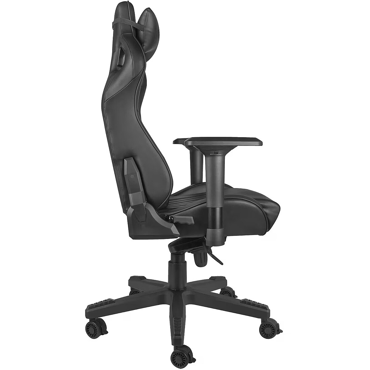 LongProductName - 150 kg, PU āda, Gāzes pacēlājs, 4. klase, Muguras/galvas balstu spilveni, 90 - 165°, 129 - 134 cm, 24,5 kg, melns