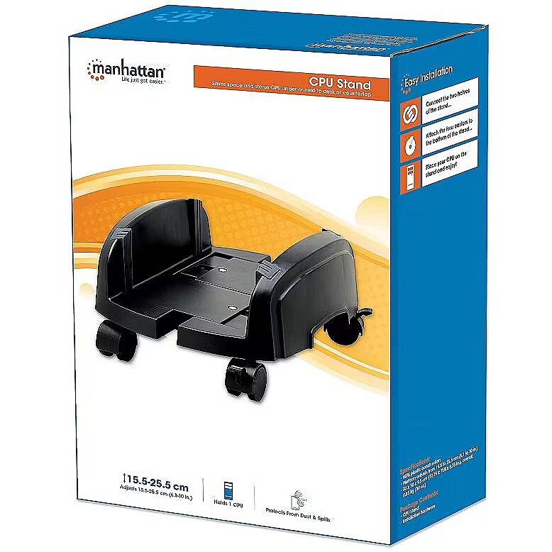 LongDesc - - Saves space and stores CPU under or next to desk or countertop- Raises computer from floor to help protect from dust, spills and other minor hazards- Heavy-duty construction adjusts 6.1 to 10 in. to accommodate most CPUs- Casters provide mobility for easy access and maintenance