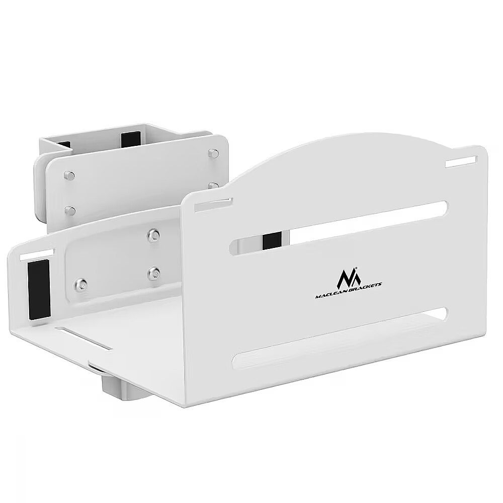 Apraksts - Maclean MC-116 datora turētājs ir praktisks risinājums tiem, kas vēlas ietaupīt vietu un rūpēties par savas darba vietas estētiku un drošību. Izturīgā konstrukcija nodrošina stabilu datora centrālā procesora montāžu pie sienas vai uz vertikāla staba vai kolonnas, kas atbrīvo vietu zem galda un atvieglo piekļuvi pieslēgvietām un kabeļiem. Šis stiprinājums nodrošina 122-212 mm dziļuma regulēšanu, tāpēc to var viegli ievietot dažādos torņa korpusu modeļos. Izturīgā tērauda konstrukcija nodrošina līdz 10 kg lielu slodzi, un divas regulējamas siksnas ar sprādzēm stabilizē datoru stiprinājumā, neļaujot tam sasvērties vai kustēties - pat vibrāciju vai nejaušu triecienu laikā.