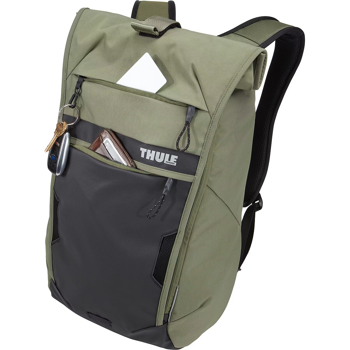 Technical details > Other features - Thule Paramount 18L commuter backpack is a streamlined, expandable backpack made for every day use – both on and off the bike; Roll-top closure and durable, coated materials provide reliable weather protection; Access your phone easily from dedicated pocket while in riding position; Unzip side panels to expand capacity up to 50%, transitioning streamlined bag into high-capacity urban cargo hauler; Stay visible in low light with reflective accents visible from all angles