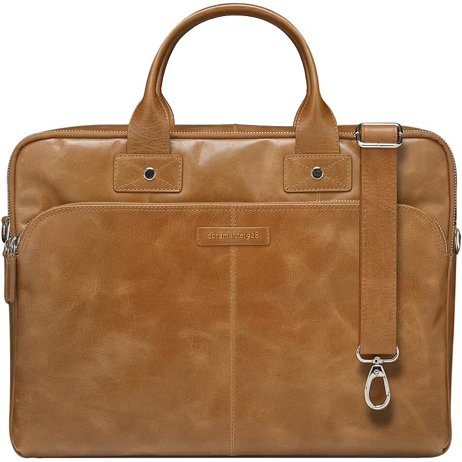 LongDesc - Kronborg is a spacious and functional laptop bag in a timeless design - practical luxury at its finest. The bag is handmade from sustainably sourced full-grain leather and has multiple well-organized storage compartments. Including a protective pocket for your MacBook or PC. The perfect bag for all your everyday necessities. • Handcrafted from durable and sustainably sourced full-grain leather• Two large and separate zip compartments plus a spacious front pocket and a back pocket• Protective pocket for your laptop• Internal organizer• Removeable and adjustable shoulder strap• Made at dbramante1928's 100% CO2-neutral factory