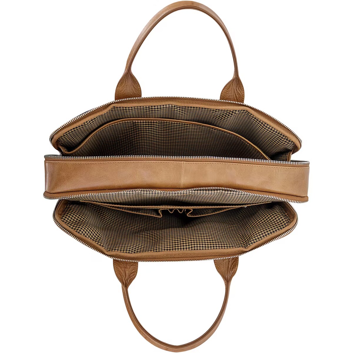 MediumApraksts LV - Šī dbramante1928 Kronborg pilngraudainas ādas soma ar elegantām, modernām līnijām un klasisku, plānu dizainu ir ar diviem noapaļotiem ādas rokturiem, noņemamu plecu siksnu un dubultu rāvējslēdzēja aizdari. Plašajā iekšpusē, kas sadalīta divās atsevišķās rāvējslēdzēja aizdares daļās, ir vairāki glabāšanas nodalījumi, tostarp polsterēta zona, lai aizsargātu jūsu datoru vai Macbook. Priekšpusē un aizmugurē ir vēl 2 rāvējslēdzēja aizdares nodalījumi.